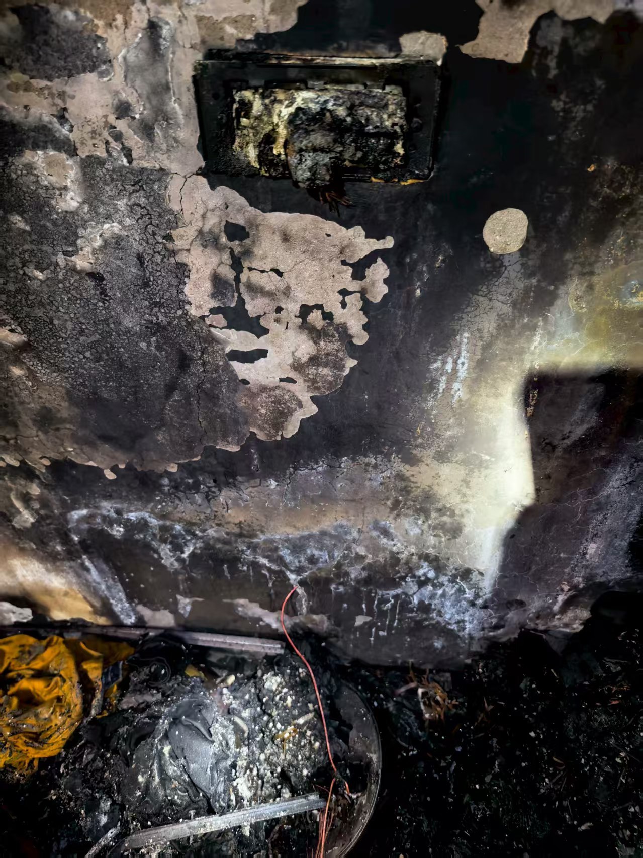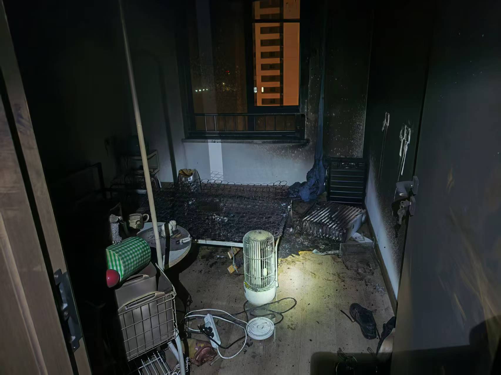 仅隔2日,在1月3日5时47分,辖区一社区居民家中发生火情,万幸的是居民发现报警及时,在消防救援人员到场前社区微型消防站第一时间进行处置,现场仅卧室床铺起火。据任女士回忆,当时在睡梦中,她突然惊醒了,就看到床尾处有火光,仔细一看,被子已被引燃,明火正向上蹿升。“火一下子就烧起来了,还有很大的烟,太吓人了。”任女士心有余悸地说。随后,任女士用湿毛巾捂住口鼻,将电源切断,用盆接自来水尝试着初期火灾的扑救。在现场勘察期间,居民卧室内一插线板上同时插有有电暖气、小太阳等大功率电器,电暖气处烧毁严重。
