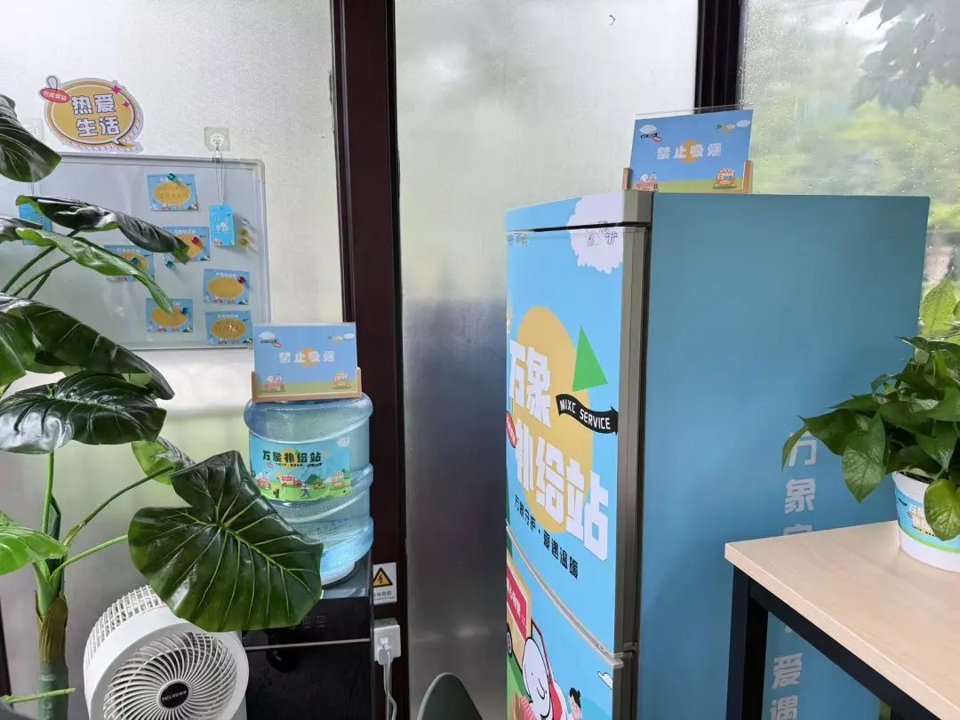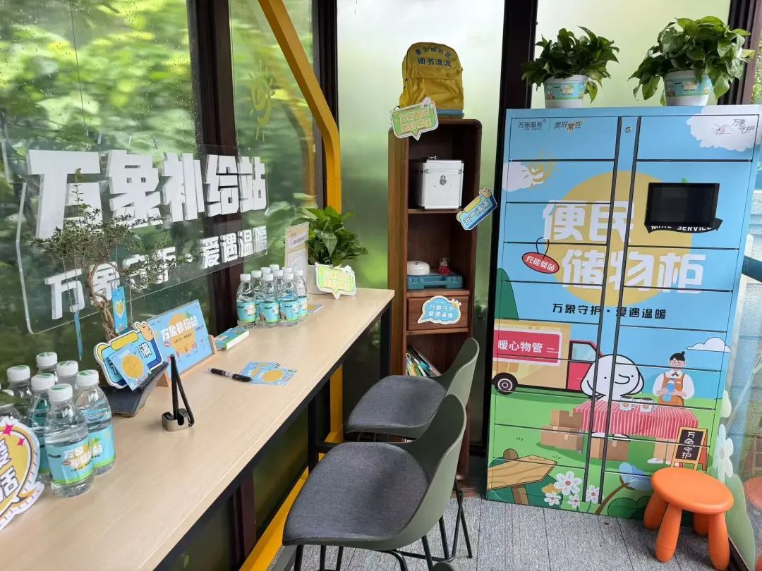 值得一提的是,社区以“爱心冷柜”为契机,整合社区闲置空间资源,联动辖区居民、物业、商户、企业华润·公园九里小区北门,共建“爱心补给站”,打造出集休憩、饮水、充电、应急药品供给及友善互动于一体的温暖港湾,推动关爱服务常态化。