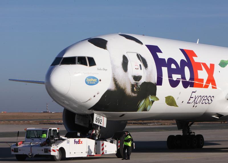 2012年1月15日,中国赠法大熊猫“欢欢”和“圆仔”抵达法国戴高乐机场。新华社记者 高静 摄