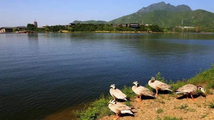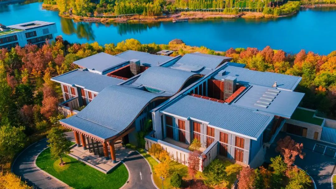 会都如同一幅精心绘制的生态长卷,以绝美的自然环境与匠心独运的景观设计,为北影节铺就了诗意盎然的底色。这里90%以上的绿化覆盖率构筑起天然的绿色基底,四季更迭间,春有百花争艳,秋见层林尽染,处处彰显着"国际会都"的非凡格局与"湖山胜境"的诗意气质。碧波荡漾的雁栖湖常年吸引白骨顶鸡、天鹅等珍稀鸟类在此栖息,湖畔两千岁的汉槐堪称北京古槐之最。当四月的晨雾轻笼湖面,电影人在林荫步道采风捕捉灵感,观众们沉醉于银幕光影与自然天籁的交响之中。四时之美,为北影节增添独特韵味,诠释了"山水灵气滋养光影艺术"的深刻内涵。2014年,雁栖湖生态发展示范区获评“北京市绿色生态示范区”,2023年雁栖湖获评生态环境部第二批美丽河湖优秀案例。