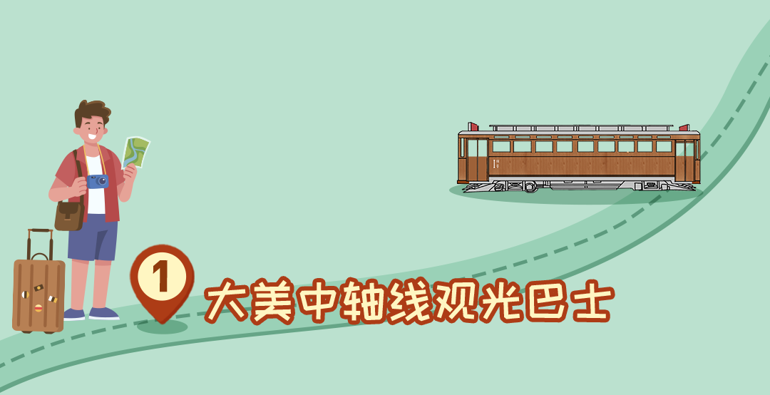 大美中轴线观光巴士均采用新型仿古铛铛车,游客可全面游览15处古都之脊的文化遗产,体验壮美有序、古今交融的城市画卷。该线路采取日游和夜游2种服务方式: