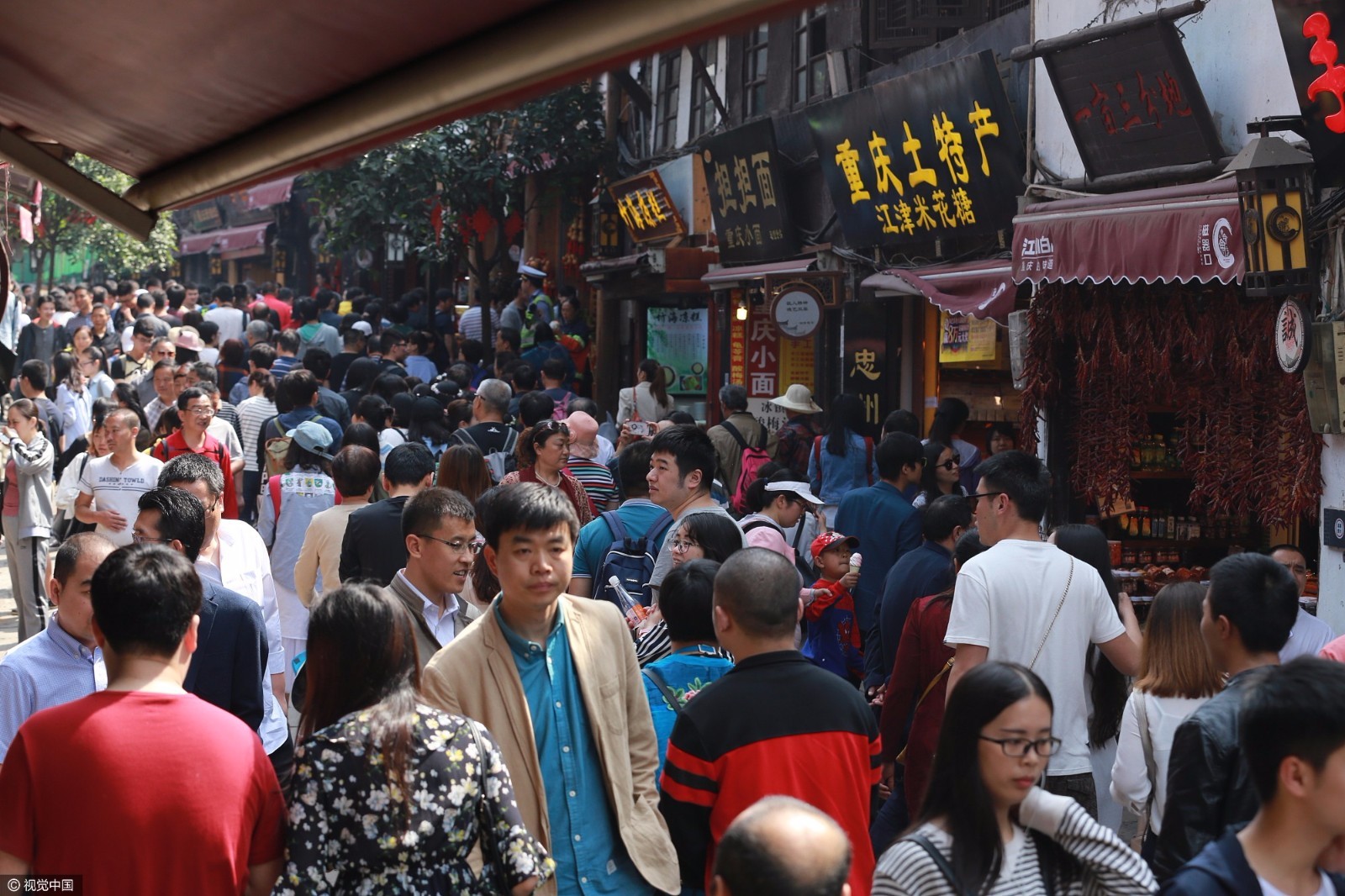 (图 重庆磁器口大街上人流如织)