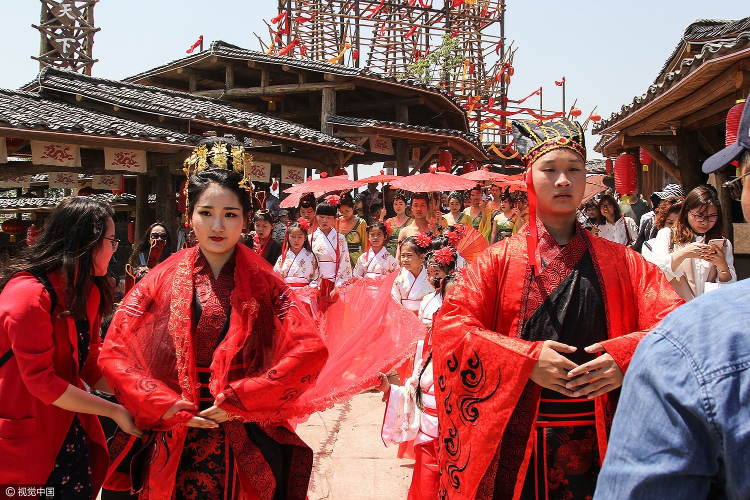 记者了解到,五一期间,镇江市大江风云体验园还上演汉式婚礼“穿越千年之恋”,体现了中式婚礼的特色,让人们感受到了传统文化魅力,吸引了大量游客和镇江市民驻足观赏拍照。主办方表示,这样的做法不但为游客们展现了中华名族深厚的文化底蕴,同时也为小长假来此旅游的游客们增添一份别样的风采。