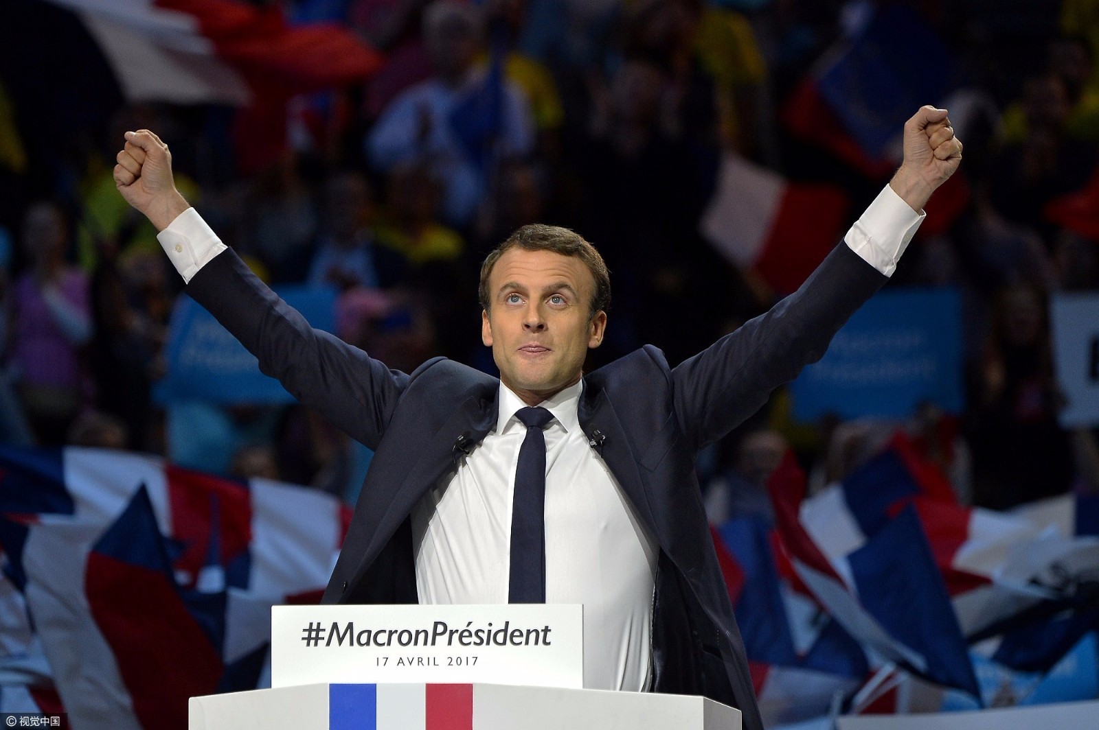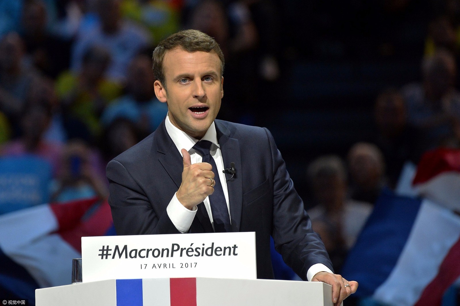 当地时间2017年4月17日,法国总统候选人马克龙在法国巴黎举行竞选集会。
