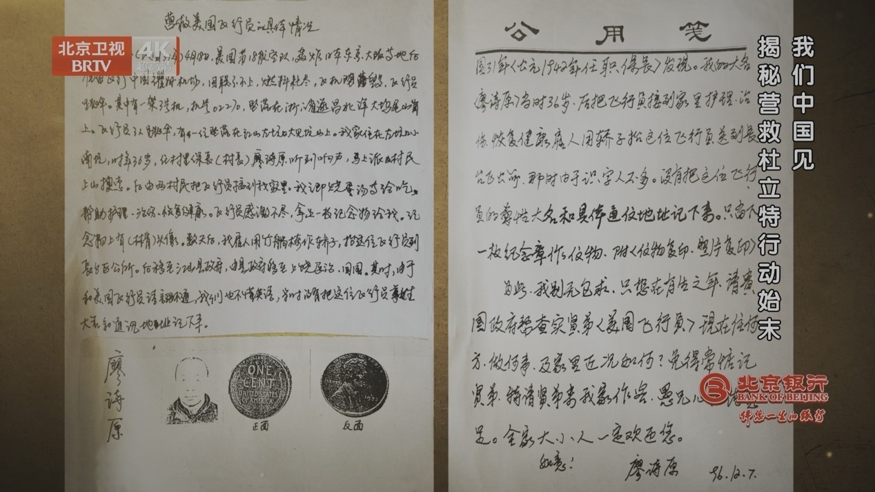 在浙江江山,农民廖诗原发现受伤坠落的3号机领航员奥祖克,毫不犹豫将他藏在家中。在物资匮乏的年代,廖家端出仅有的鸡蛋面,让出儿子的床铺,用草药为他疗伤。五天后,奥祖克被安全送走,临别前他留下一枚一美分硬币,成为这段缘分唯一的信物。