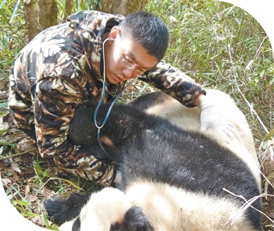 金艺鹏给野外大熊猫做体检。