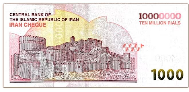 新发行的粉色纸币正面印有9世纪亚兹德贾梅清真寺的图案,背面则印有拥有2500年历史的巴姆城堡。它现已成为流通中面额最大的伊朗纸币——取代了2月初刚刚推出的500万里亚尔纸币。