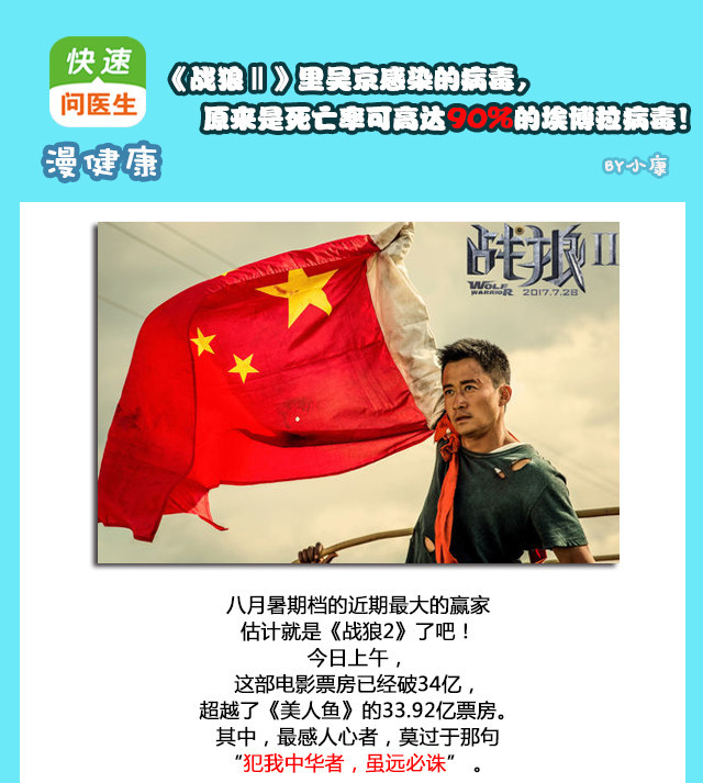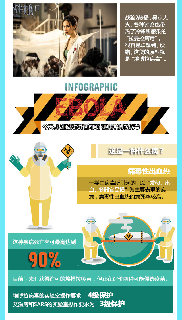 《战狼2》中的拉曼拉病毒只是出现配皮肤出疹的情况,其治愈速度也快得惊人。但电影是电影,现实生活中的埃博拉远远比电影出现的恐怖百倍: