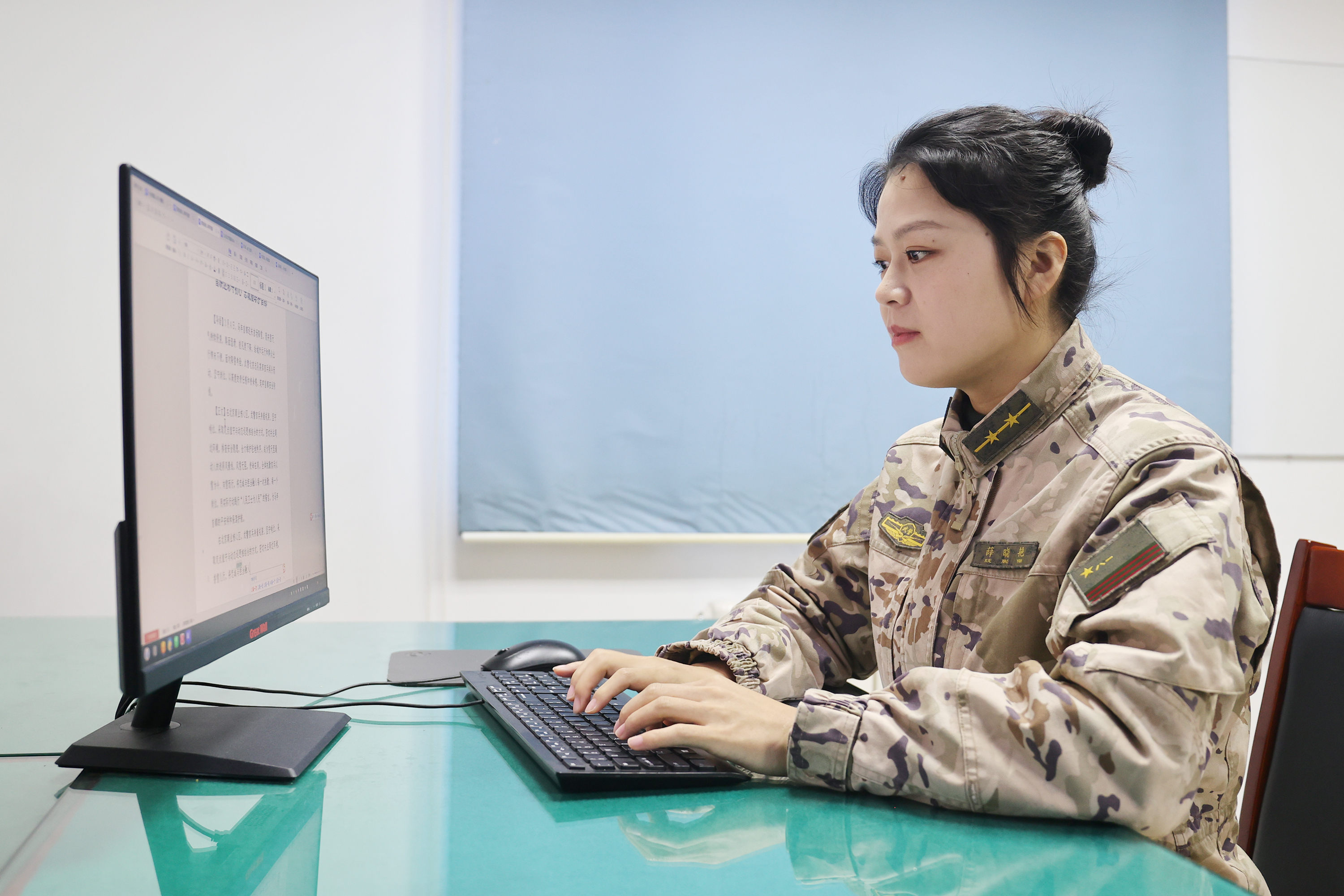 财务女助理秉持严谨细致的作风,规范经费管理、精准核算报销,筑牢部队财务安全防线。