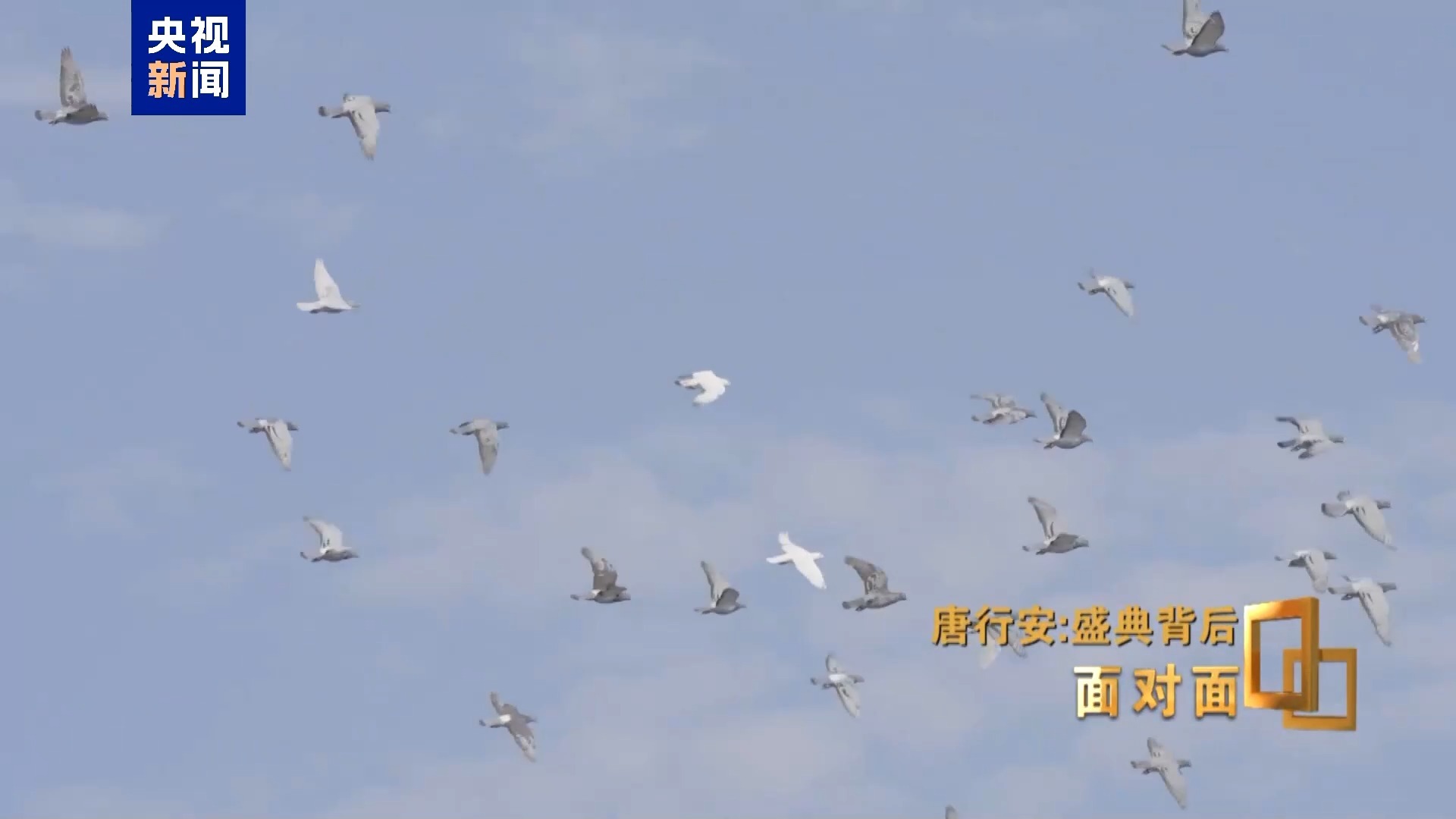 唐行安:九三活动当天,凌晨六点多钟,在广场上飞来了十几只鸽子,最后在年号台鸽子附近盘旋。当时我们就在想,是不是它们感觉这还有一群鸽子,为什么不飞啊?那我们飞飞,把它们引走。所以我们觉得这鸽子造型太逼真了,把它们的同类都吸引来了。