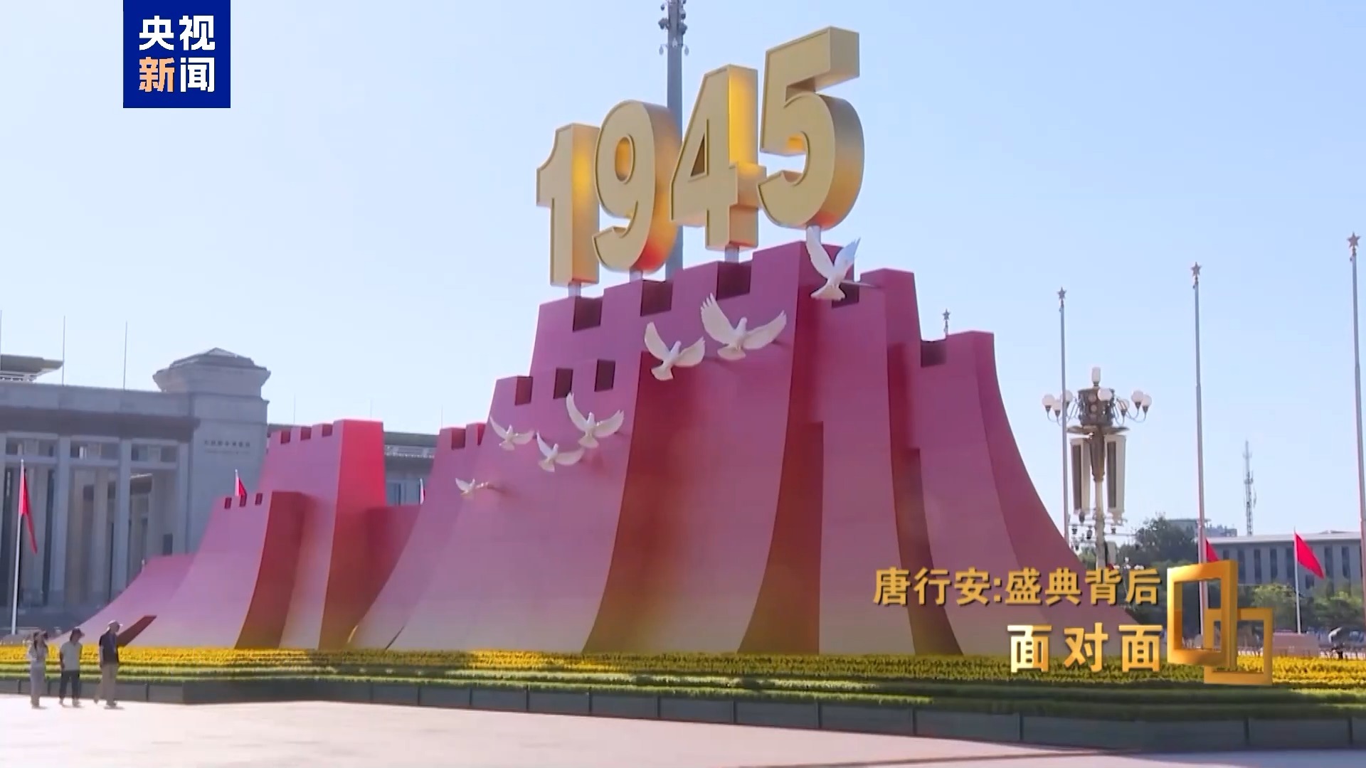 年号台是此次广场活动最为核心的要素之一,两座高14米的年号台对称布局,位于人民英雄纪念碑东西两侧,以“钢铁长城”为主体造型,托举“1945”与“2025”金色年号,犹如链接历史与未来的“时空之门”。