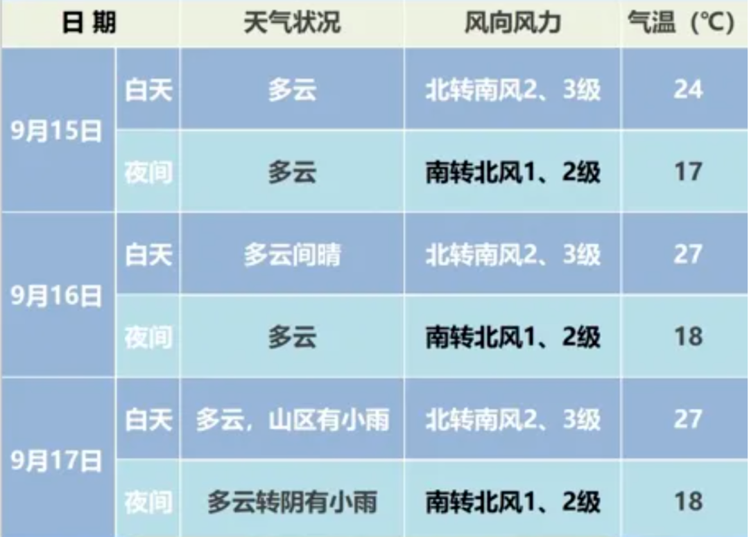 北京市气象台首席预报员张琳娜介绍,中秋假日期间(9月15日至17日),京城天气以多云为主,其中17日白天山区有小雨,夜间大部分地区有小雨,但主要在后半夜。