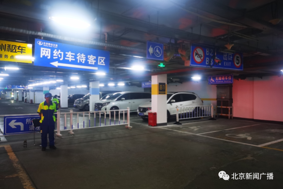 北京站东侧华通停车场为旅客开辟网约车候车区。旅客从出站口向右手方向往东,直行250米即可看到华通北京站停车场,按照指引进入地下一层的网约车候车区候车。