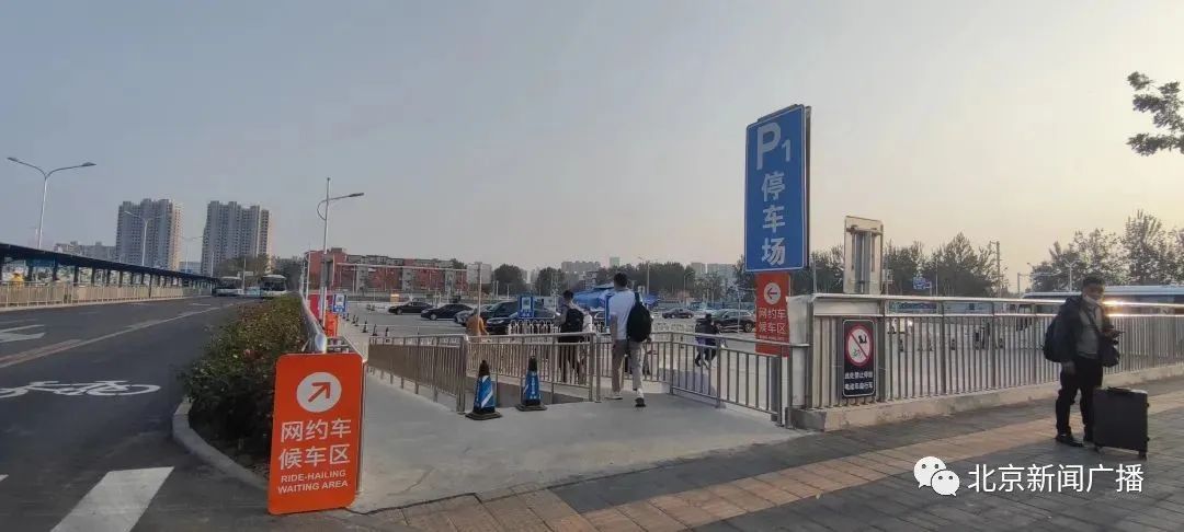 北京丰台站地区网约车专属停车位及旅客等候区位于站外P1停车场。旅客从东南口出站后沿着人行通廊,根据指引标识可达。网约车区按照旅客手机尾号数进行分区、分车道,约车软件直接提示旅客到对应通道(共设置6个通道)候车,提高接驳效率,减少候车时间。