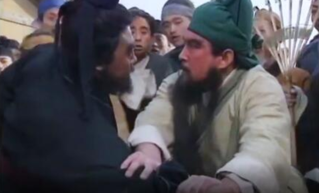 关羽心头火起,指责他不该弄碎自己的绿豆,张飞却不肯认账,还非说关羽卖豆粉,两人你一言我一语,就吵开了,看热闹的人越围越多。这时候,过来一个卖草鞋的,大声劝架说:“住手,你两小子,敢在我地头上打架生事,翻天了是吗?有什么过不去的都可坐下来谈嘛。”