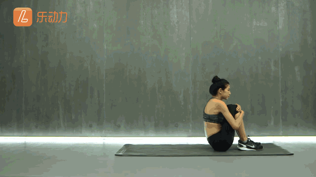 团身滚动动作~最大程度环抱住双腿,利用惯性前后滚动,背部肌肉、腹部肌肉放松再滚动~