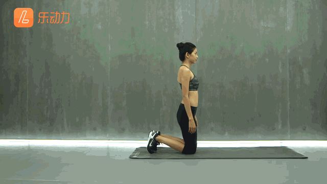 跪姿下压动作~左腿向前迈出,右腿膝盖着地,呈弓步,身体向前方倾靠,右手按髋部后侧辅助身体前压,感受髂腰肌的牵拉感~