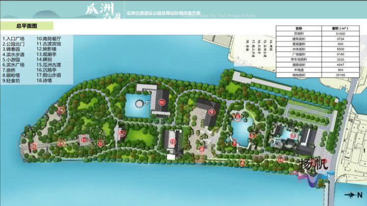 正在打造的瓜洲古渡公园三面环水,位于于大运河风光带扬州段门户位置,公园内有银岭塔、锦春园、观潮楼等古建,文化遗存丰富。根据规划,未来公园将分为入口片区、银岭塔片区和瓜洲古渡口片区三大板块,其中入口片区建设游客服务中心和文化展示馆,银岭塔片区是以古塔为中心打造功能设施,瓜洲古渡口片区则将重现“古渡观潮”的盛景。瓜洲古渡公园改造设计师潘萌说,他们将依托现在的生态遗存以及文化遗存,打造一个集运河文化以及古渡文化的运河文化公园。