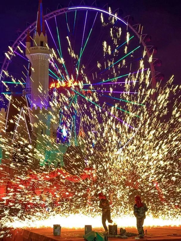 融合非遗打铁花、国潮醒狮、