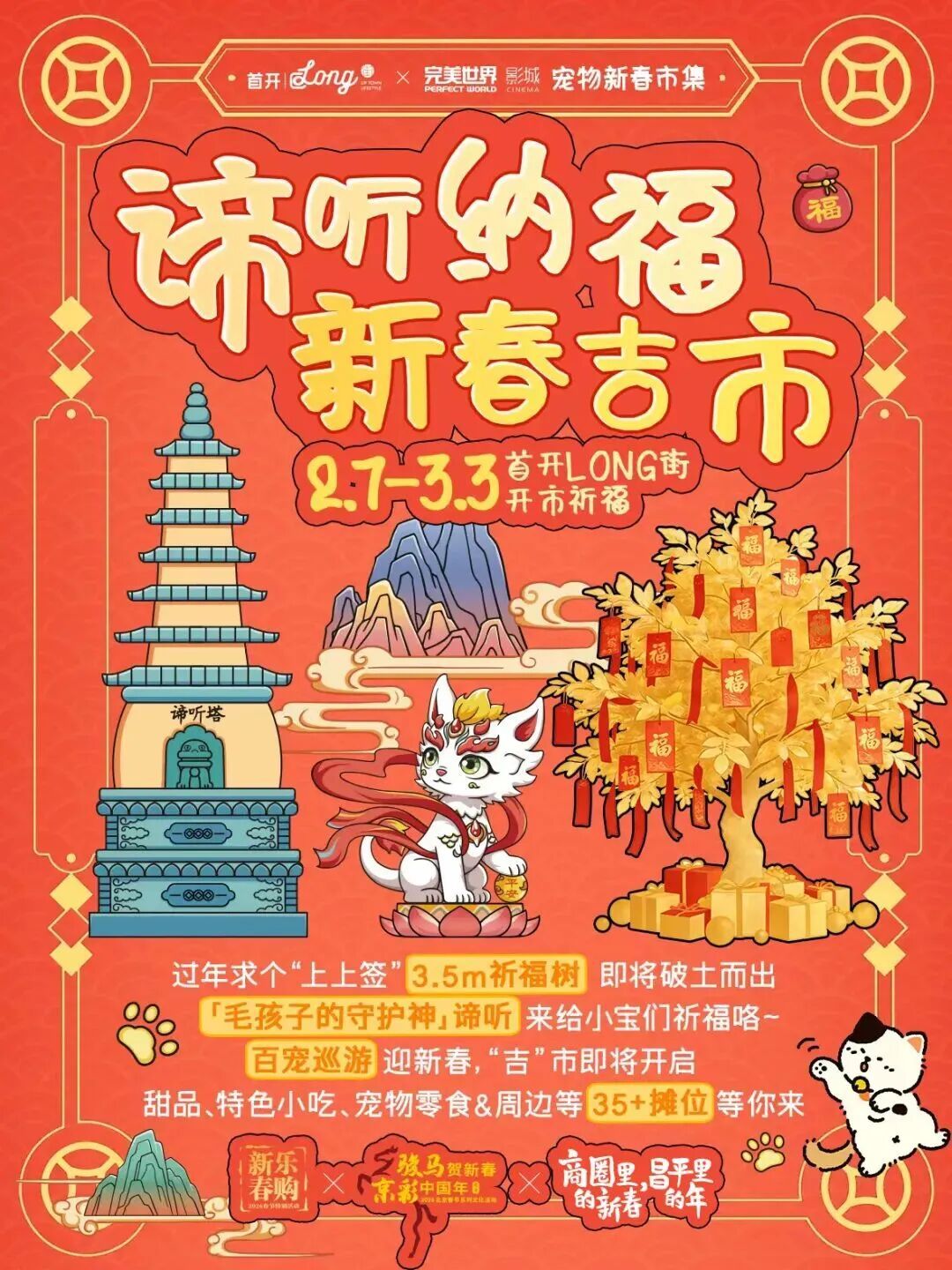 与九华山文创谛听IP联名,打造为期近一个月的宠物友好主题市集,不仅有传统舞狮、财神巡游,更带来独特的文化体验与萌趣氛围。