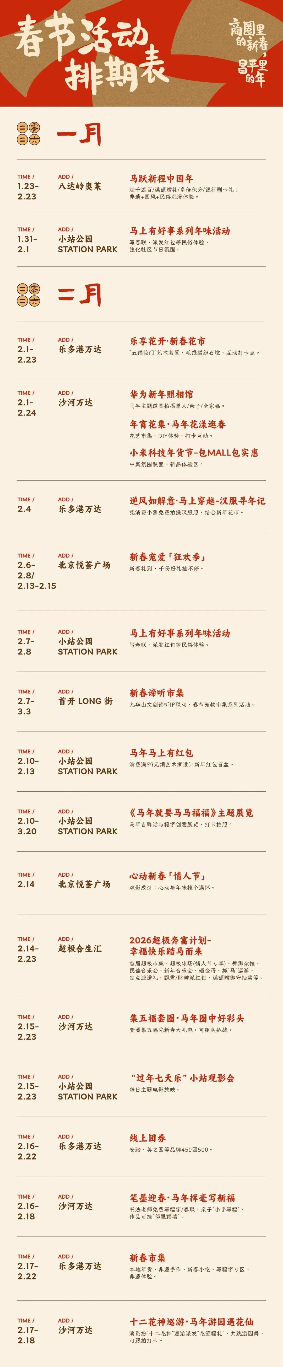 这场贯穿整个2月的“新春嘉年华”才刚刚起跑。接下来,还会有更多意想不到的“抓马”惊喜和热辣活动陆续登场,像是不断拆开的年味盲盒,每一天都藏着新鲜感。我们想在这个红彤彤的季节里,用这一份份冒着热气的活动,填满你的假期空档,也装点你对生活的热爱。