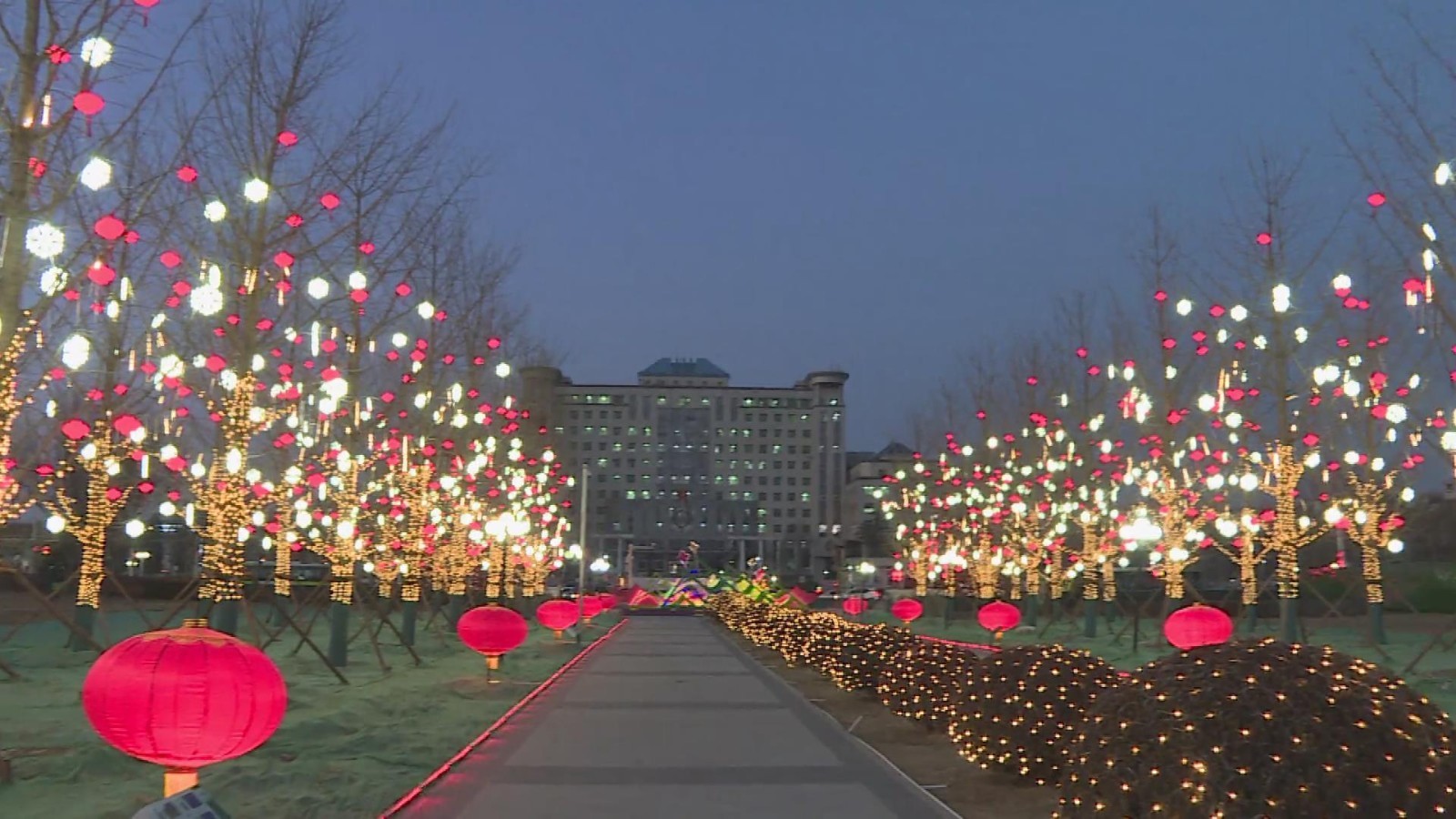 据了解,今年全区景观布置以“欢乐祥和幸福荟 红红火火中国年”为主题,共计对人流密集的11条大街进行布置,最大限度的利旧呈新。在府前广场、长阳公园、昊天公园、文体公园等4处公园布置景观小品6组、投影灯2处、树挂灯4521个,缠树灯20000米。