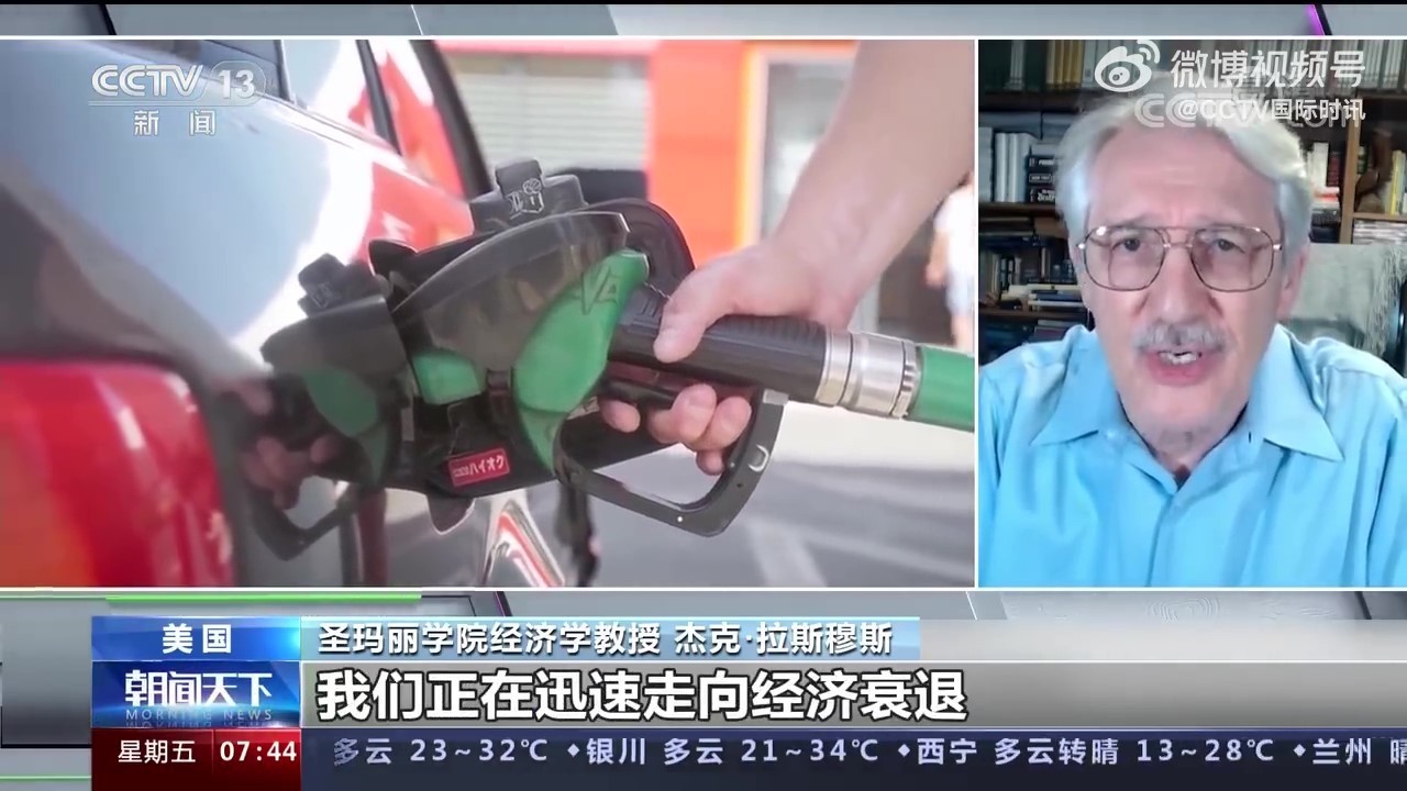 圣玛丽学院经济学教授 杰克·拉斯穆斯:现在投资急速放缓,虽然消费有所上涨,但由于通胀,消费并不能算是真正的上涨,这一切指数都告诉我们,我们正在迅速走向经济衰退。有的经济学家说,“我们没有大幅裁员,所以我们没有处于经济衰退之中。”但就业率指数总是滞后的,很明显,到了九月份,他们就会承认美国经济正处于衰退之中。