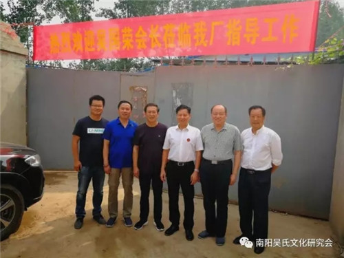 在南阳吴氏文化研究会会长吴雷的全程陪同下,国荣会长先后到南阳市科技馆敬铸“三公仪像”承制单位“河南省南阳楚汉文化实业有限公司”展厅、”河南省南阳楚汉文化实业有限公司“浇铸车间、车间工艺技术部,现场调研考察和指导。两会决定在今年十月份厦门吴氏宗亲会成立两周年和厦门吴文化研究会挂牌就职典礼之时,在发起地厦门隆重举行”三公仪像“的祭祀揭彩仪式。为推动此项功德事业的健康顺利开展,国荣会长表态,厦门吴氏宗亲会作为统一“三公仪像”的发起方和积极倡议者,将在厦门成立“宣传、推动统一`三公仪像’服务中心”与南阳吴氏文化研究会一道,在世界吴氏宗亲总会的引领下,从我们这一代真正实现“三公仪像“在全世界的统一,彻底解决目前”三公像“形态各异,对祖宗大不敬问题,以告慰祖宗的在天之灵。国荣会长作为东汉大司马、大将军、广平侯泰伯38代孙吴汉的后裔,还来到祖地南阳卧龙区潦河坡镇吴老庄吴汉墓地拜祭先祖。
