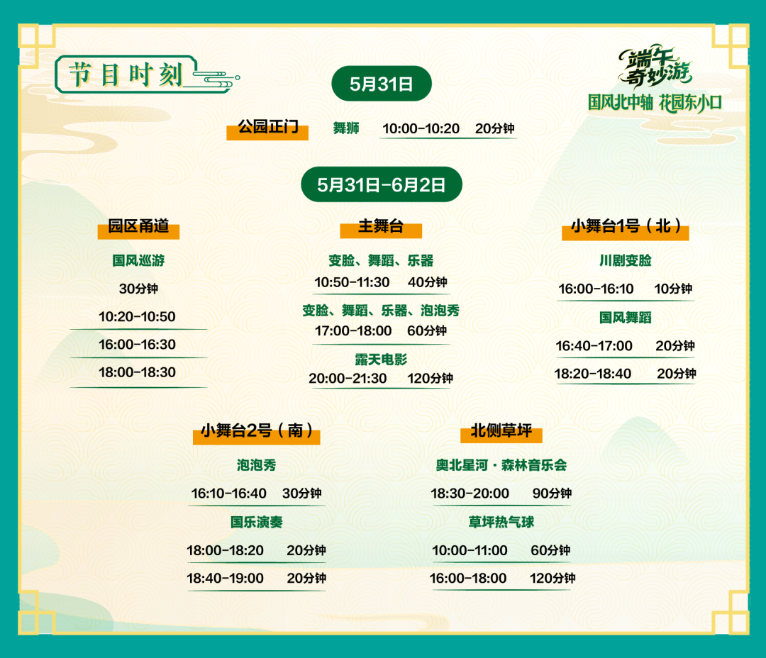 艾叶飘香,霓裳翩跹,这个端午,不必远行,来东小口奥北森林公园二期。5月31日-6月2日,「国风北中轴·花园东小口」,即将开启一场穿越千年的端午奇遇!