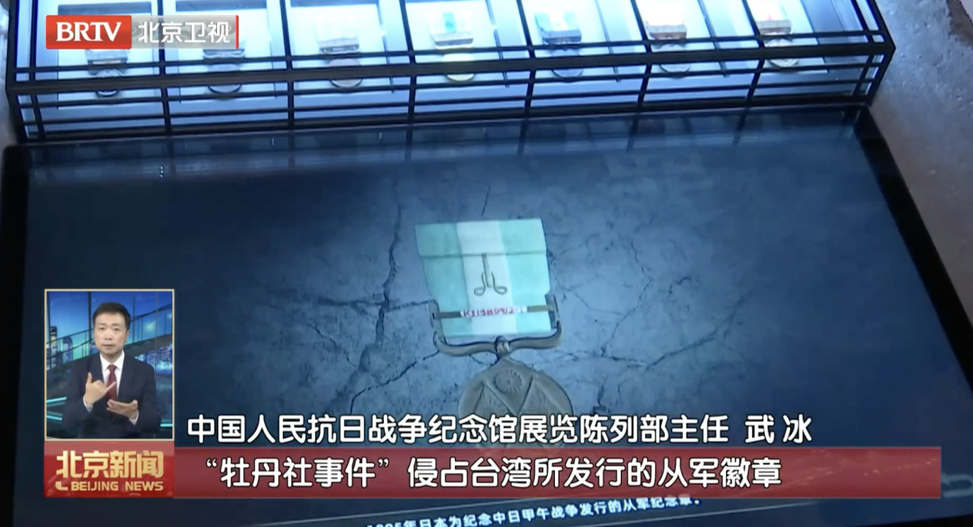 中国人民抗日战争纪念馆展览陈列部主任武冰介绍:“这七枚徽章是日军从1874年‘牡丹社事件’侵占台湾所发行的从军徽章,到1937年7月7日‘卢沟桥事变’发行的纪念徽章,我们就是用文物讲故事,这七枚徽章无声地诉说了日军侵华蓄谋已久的大背景。”