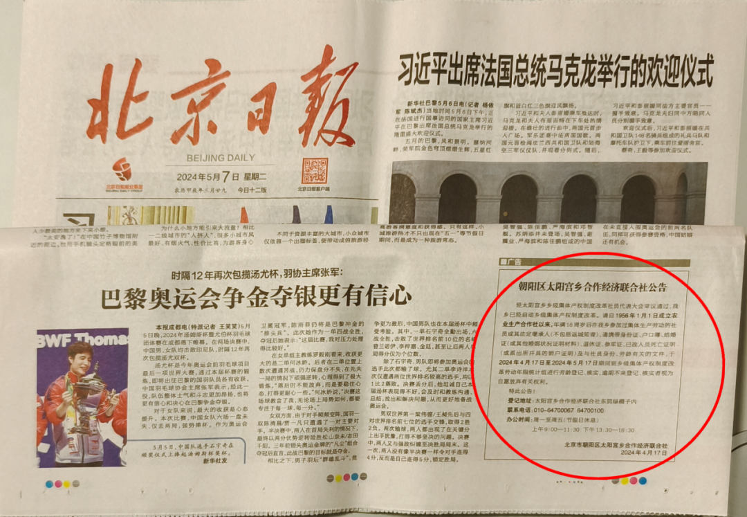 根据乡级产改工作程序,劳龄登记第一榜公示后,还将进行第二榜、第三榜公示。集体经济组织成员如对公示结果有异议,可通过来信、来电、来访等形式,于公示期内向太阳宫乡合作经济联合社反映。