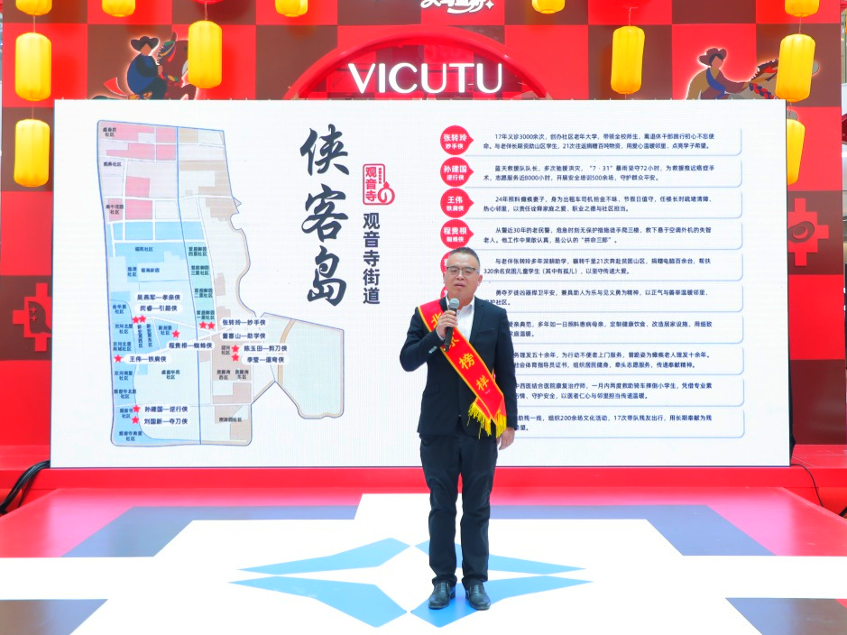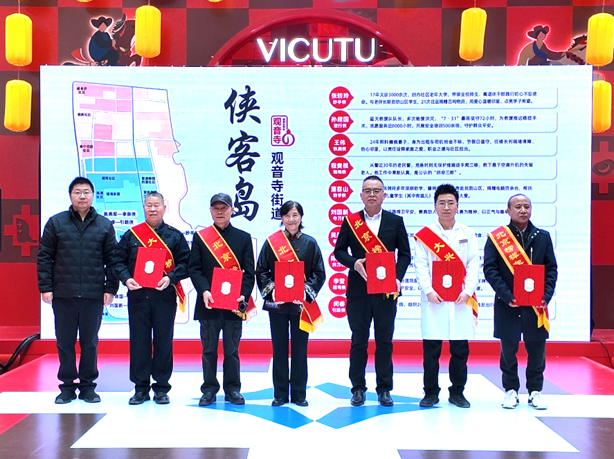 活动的高潮之一,是观音寺街道创新推出的“侠客岛”文明实践计划正式启动。该计划巧妙借用中国传统文化中“侠客”的意象,将社区中默默奉献的榜样人物喻为“文明侠客”。