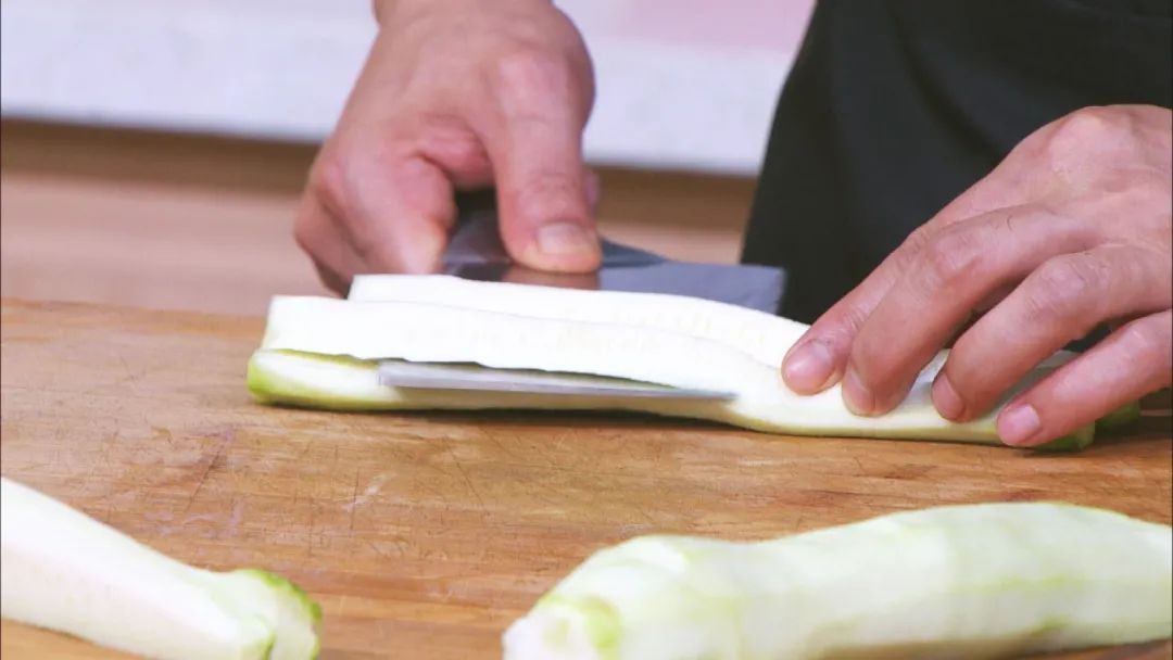大厨窍门:丝瓜的头尾、丝瓜皮、丝瓜瓤特别容易变黑,所以防止变黑要把这几个部分去除。