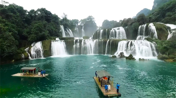 如今,中越德天·板约国际旅游合作区的建设工作已初见成效。围绕德天瀑布和归春界河的六大功能区,整合了周边的四十余处国家级景区,瑰丽的美景星罗棋布,每天吸引着近两万名中外游客的到访。