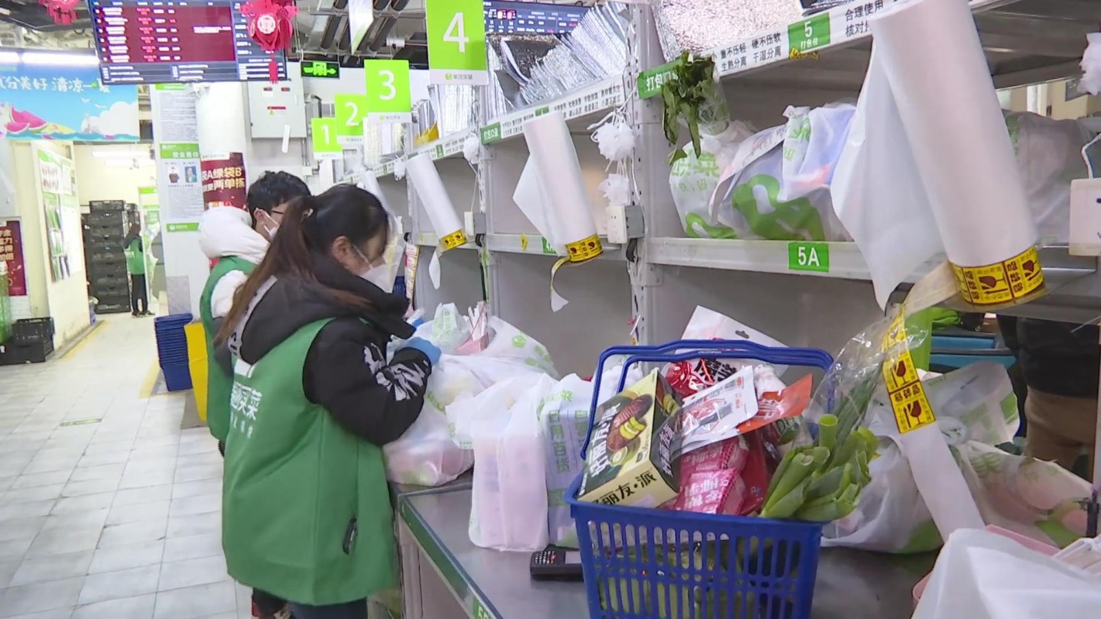 在美团买菜定福庄站点记者看到,站内订单不断,负责分拣、配送的工作人员也分外忙碌,记者从美团买菜了解到,目前朝阳地区站点订单数普遍激增,相比起日常增加了约一至两倍左右。面对激增的订单需求,站点的分拣员和配送人员已全部上岗。平台还紧急抽调跨区的工作人员前来支持,负责分拣、理货和配送等工作,从保供应、保配送、保人员安全等各环节,全面保障北京市民的生活物资需求。