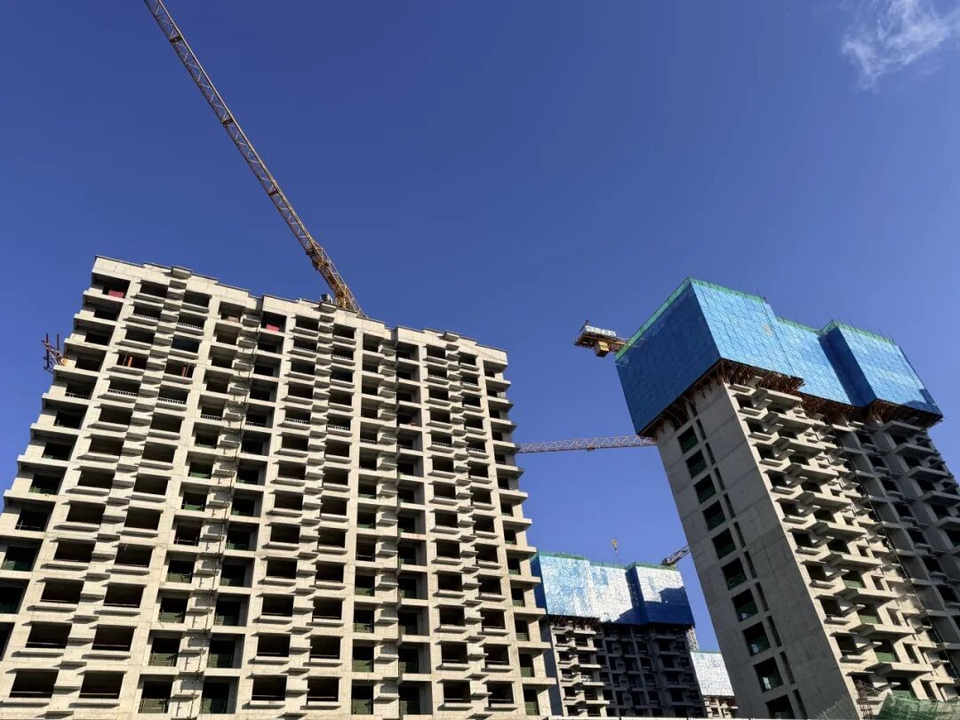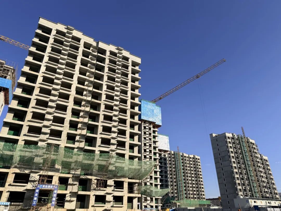 “目前所有住宅楼主体结构已完成封顶,工人正在加紧准备二次结构砌筑工作,部分楼栋已进入外立面施工准备阶段。”项目负责人段亚军介绍,自项目开工以来,施工团队挂图作战、紧盯节点,高效推进工程进度,严格把控施工质量。