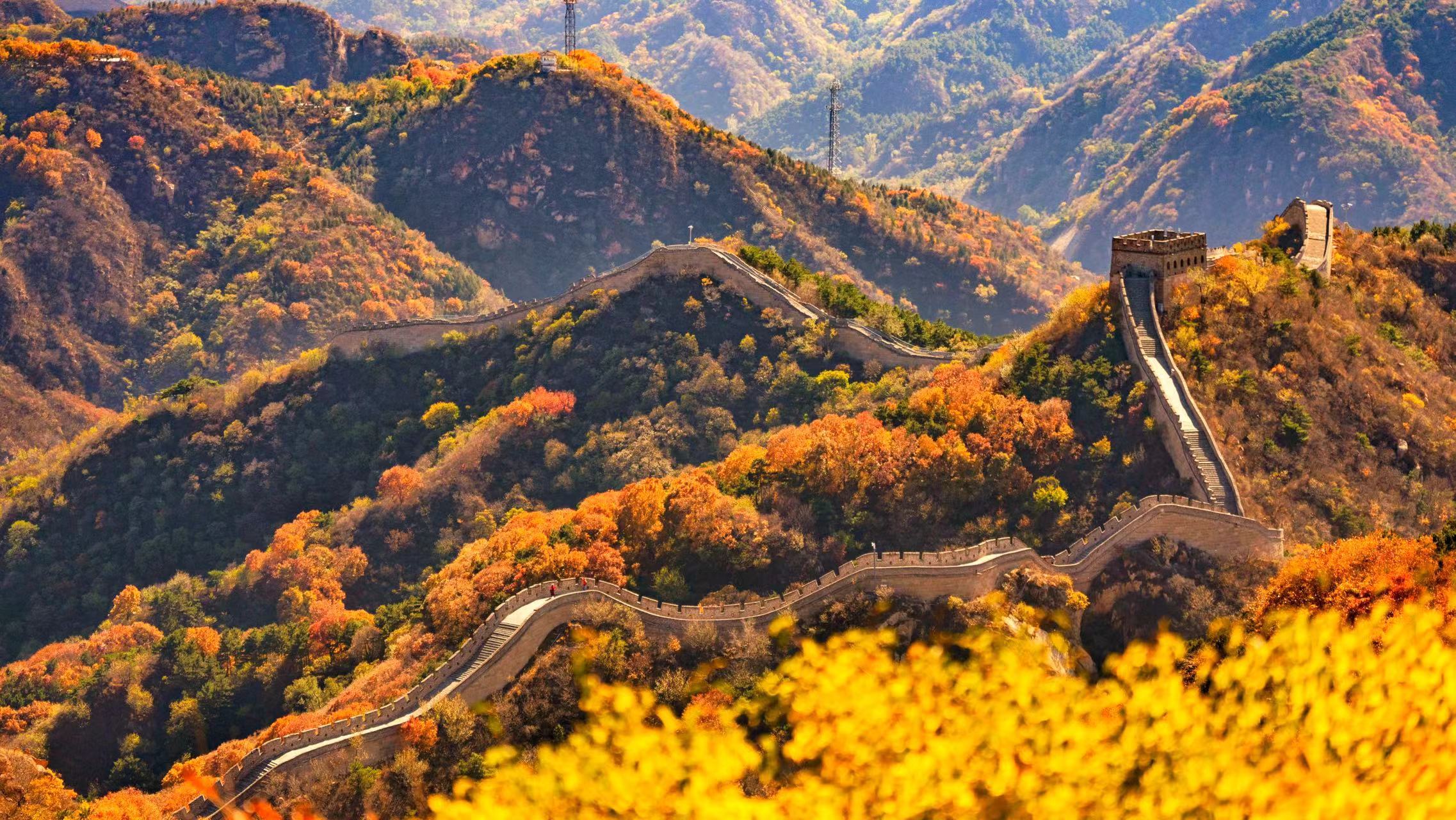 此刻,八达岭长城红叶已进入最佳观赏期 。