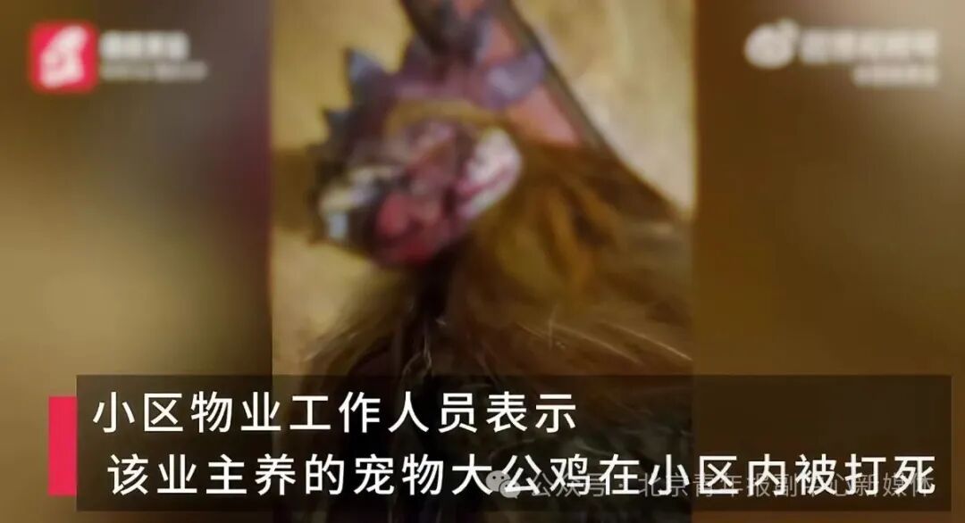 小区物业工作人员称,该业主养的宠物大公鸡在小区内被打死,她气愤不过,在小区内宣泄情绪,物业多次安排保安前去劝阻,社区工作人员也正积极与她沟通。