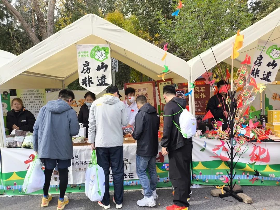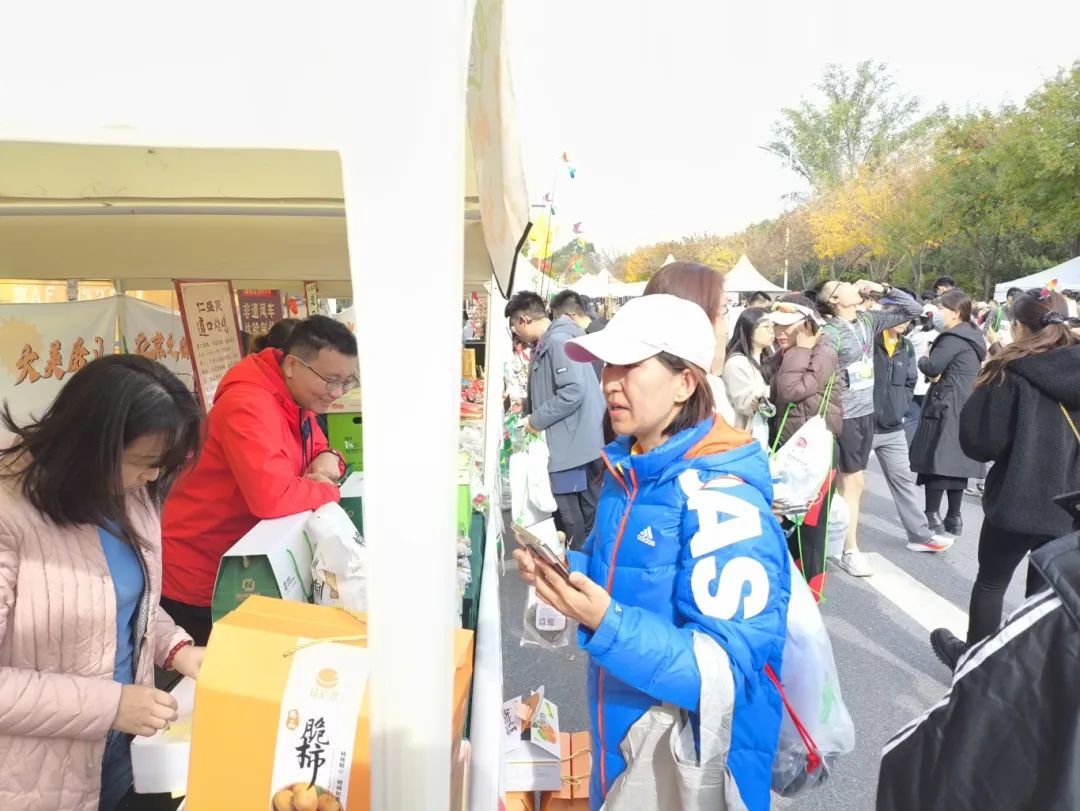 房山农特展区为选手们带来了道口烧鸡、韦氏桃酥、云居鲜花饼、麦子的光芒(面包)、瓜果梨桃、张坊磨盘柿等农产品,让选手们在奔跑之余,也能品尝到地道的房山味道。