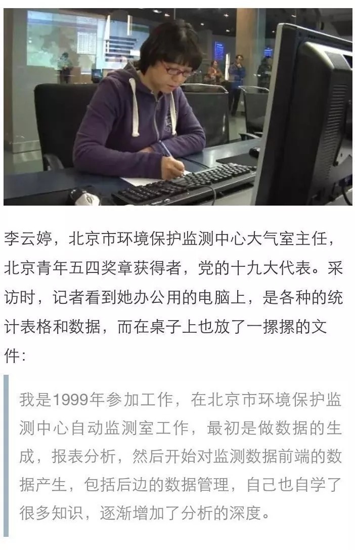 李云婷:对对对用李云婷自己的话说,她的工作是挺平凡的,是时代赋予了她更多的机会2011前后雾霾逐渐进入公众的视野,北京市环保局在2012年开始了对于PM2.