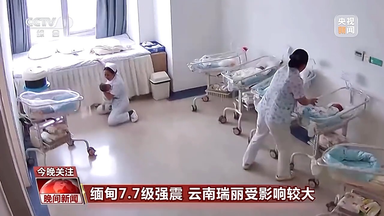 3月28日,缅甸地震发生瞬间,云南瑞丽一家月子中心里,一名护士正好怀里有孩子,她顺势蹲下,努力护住怀里的宝宝。等震情趋于稳定后,这名护士说了一句“没事没事”。
