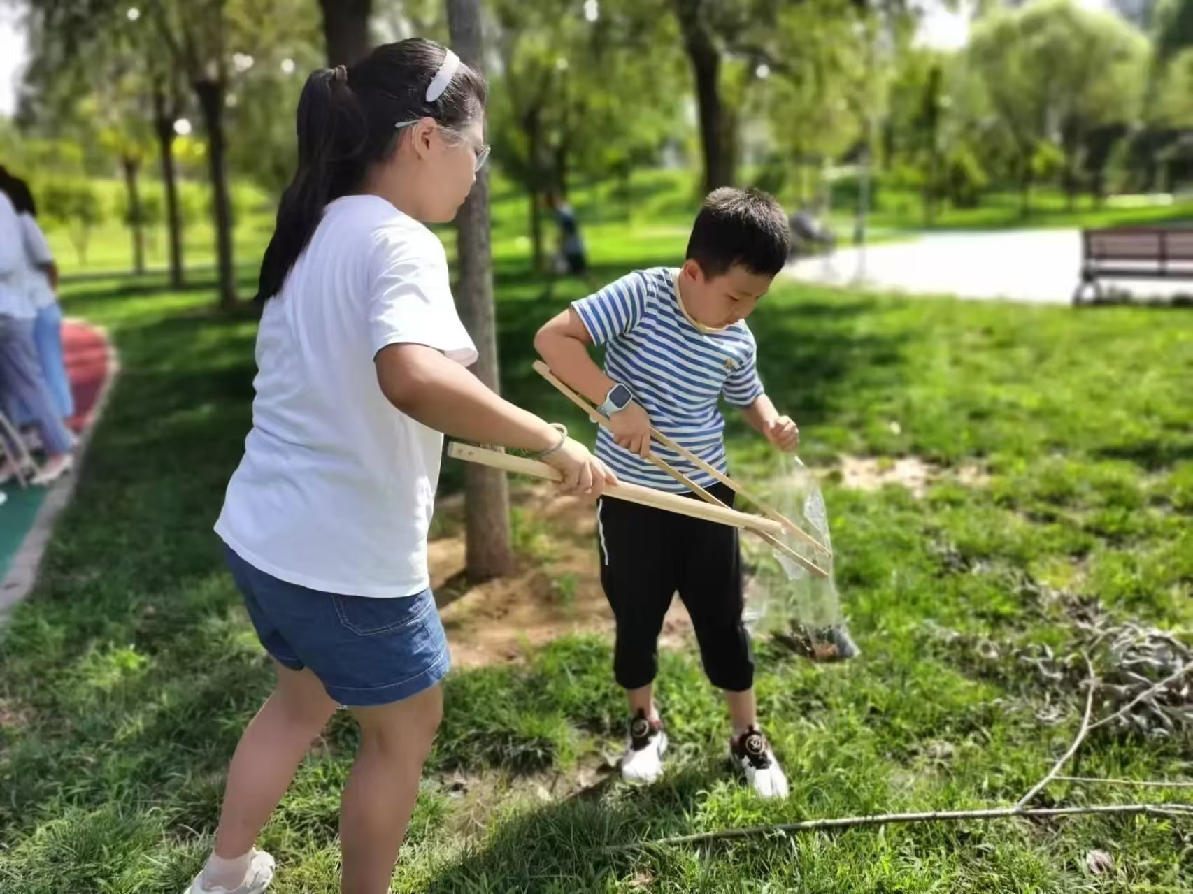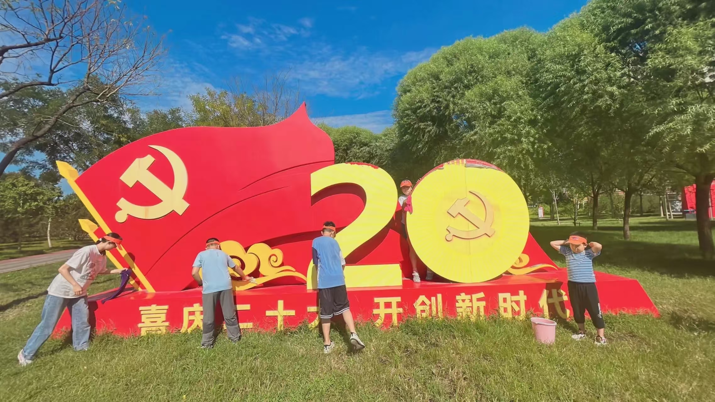 这边游戏正酣,那边青少年们又行动起来。他们擦拭公园党建文化墙,捡起白色垃圾、烟蒂、枯死树叶,还向游客宣传文明养犬。大家分工合作,不怕脏、不怕苦、不怕累,尽显新时代青少年的精神风貌。
