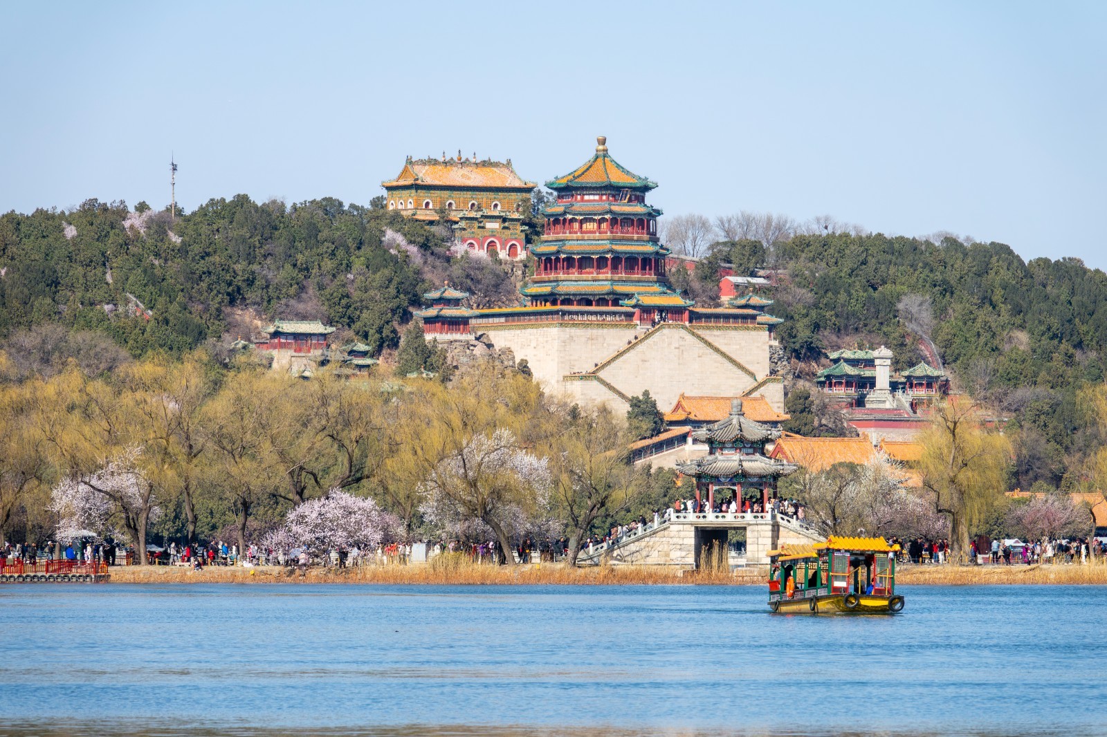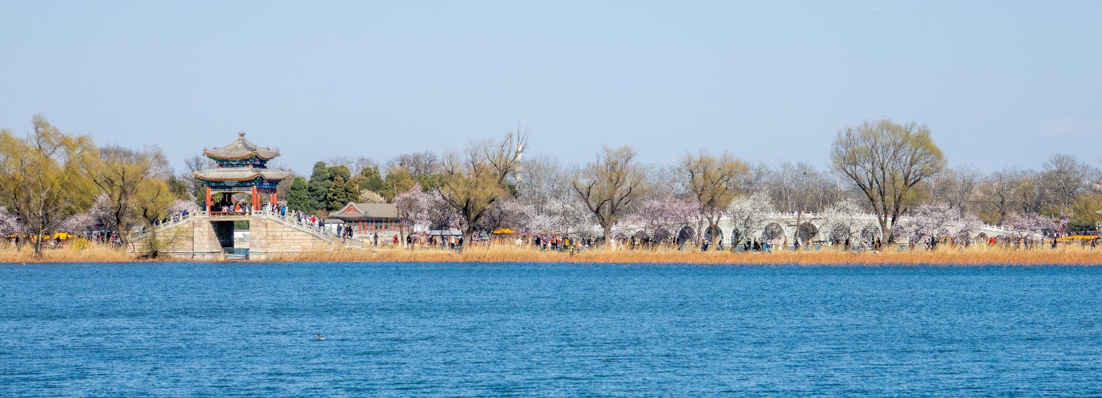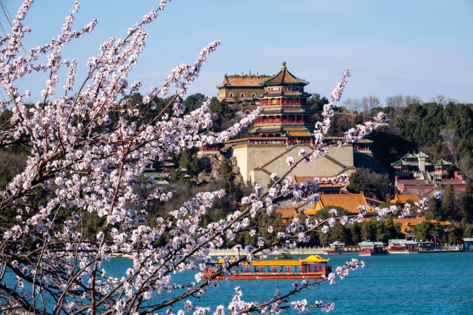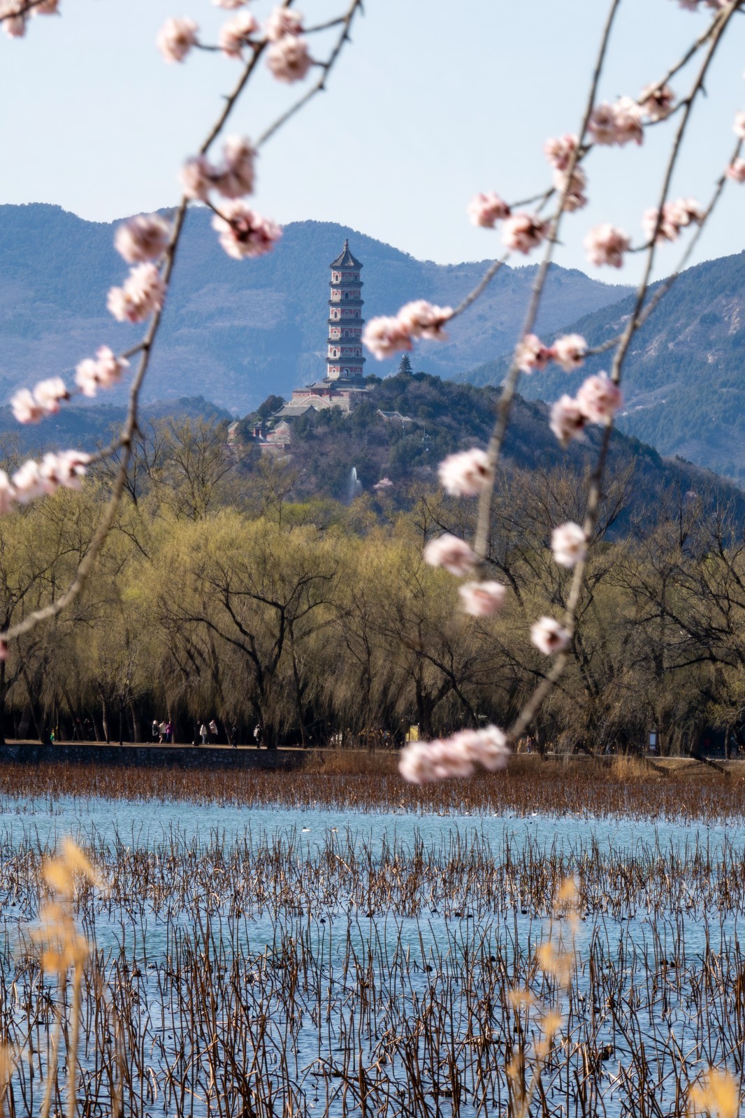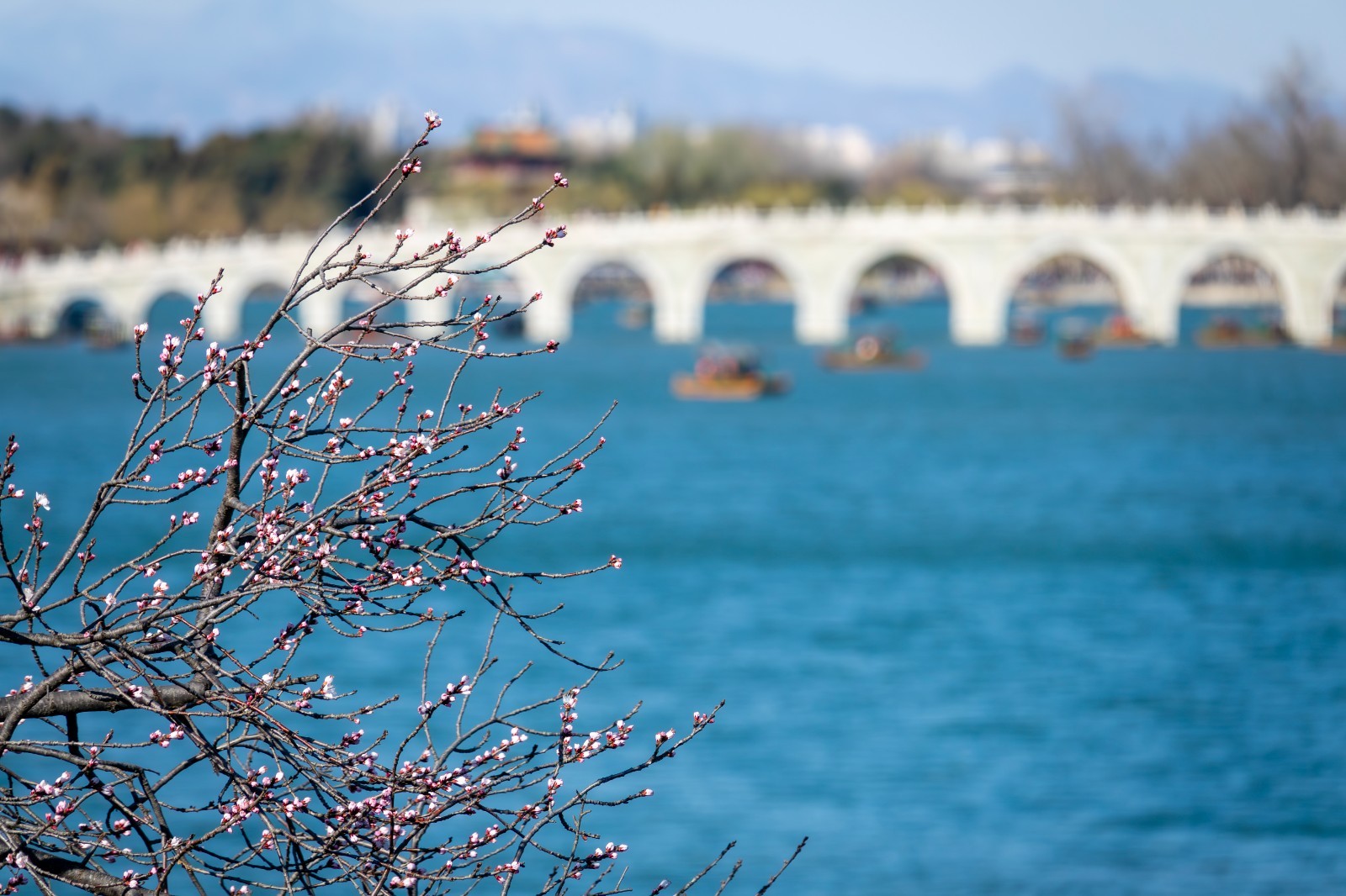 西堤位于颐和园的昆明湖西侧,是一条长约1.6公里的堤道,仿照杭州西湖的苏堤而建。西堤的桃花主要以山桃为主,也有部分碧桃和其他品种。山桃花色多为粉红或白色,花瓣娇嫩,香气淡雅。每年3月中下旬至4月初是西堤桃花的最佳观赏期,此时桃花竞相开放,与昆明湖的碧波相映成趣,形成一幅绝美的春日画卷。
