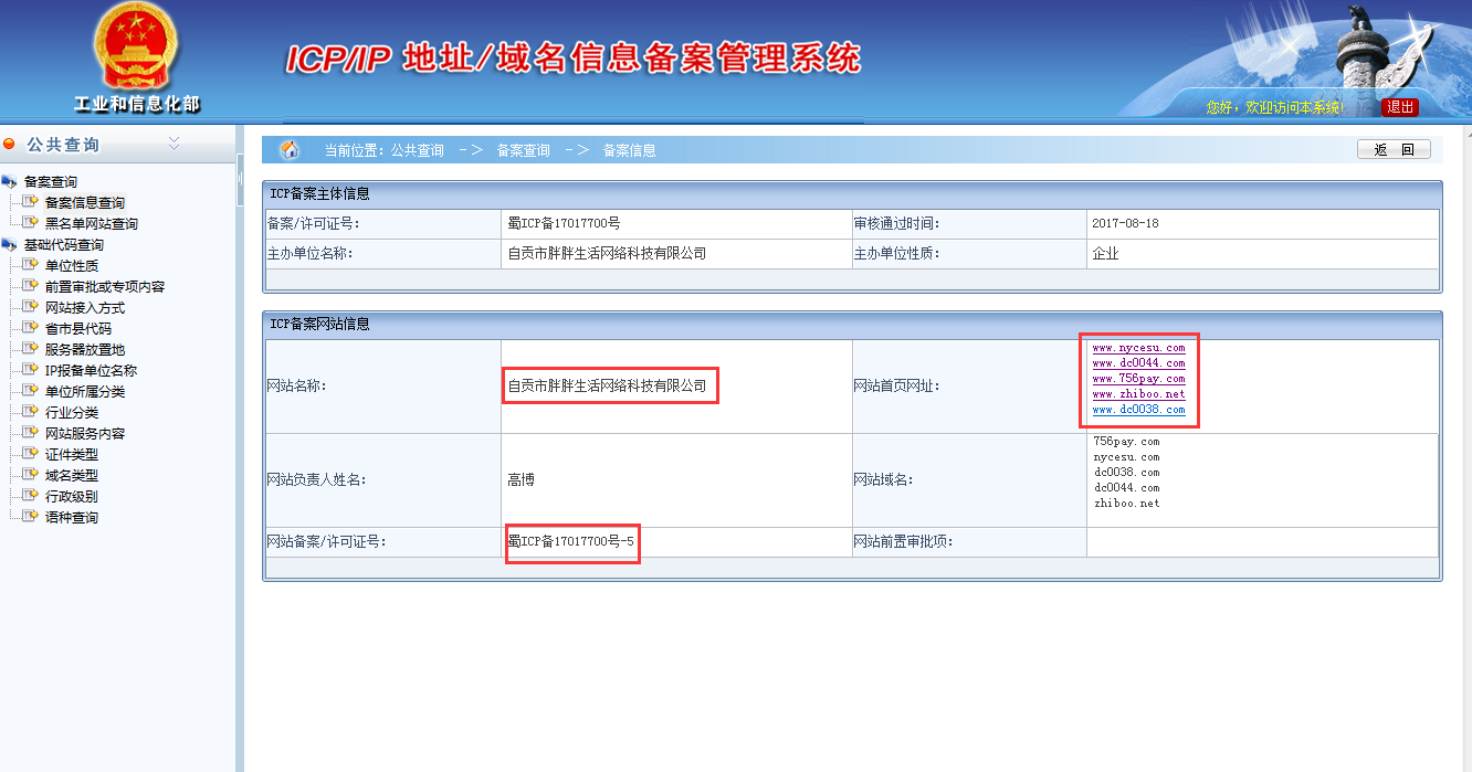 近日,有媒体纰漏四川省通信管理局于2017-08-18日首次与《互联网信息服务管理办法》杠上?最终谁是谁非?我们一起期待关注,四川通管局为一家名叫自贡市胖胖生活网络科技有限公司非法备案通过了5个非法赌博类网站域名,备案号是蜀ICP备17017700号-1至-5,从事非法博彩赌博活动、非法直播活动,昨天18日周五刚审核通过,今天19日访问得知在四川省从事非法互联网经营活动也是可以顺利通过备案的,在全国通管局看来还是中国首家政府行为。网友质疑,都知道赌博网站很暴力,很赚钱,该局长是不是收受贿赂了不少好处费?