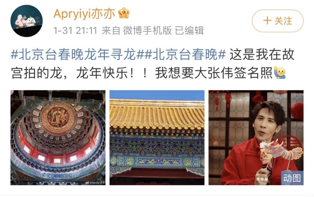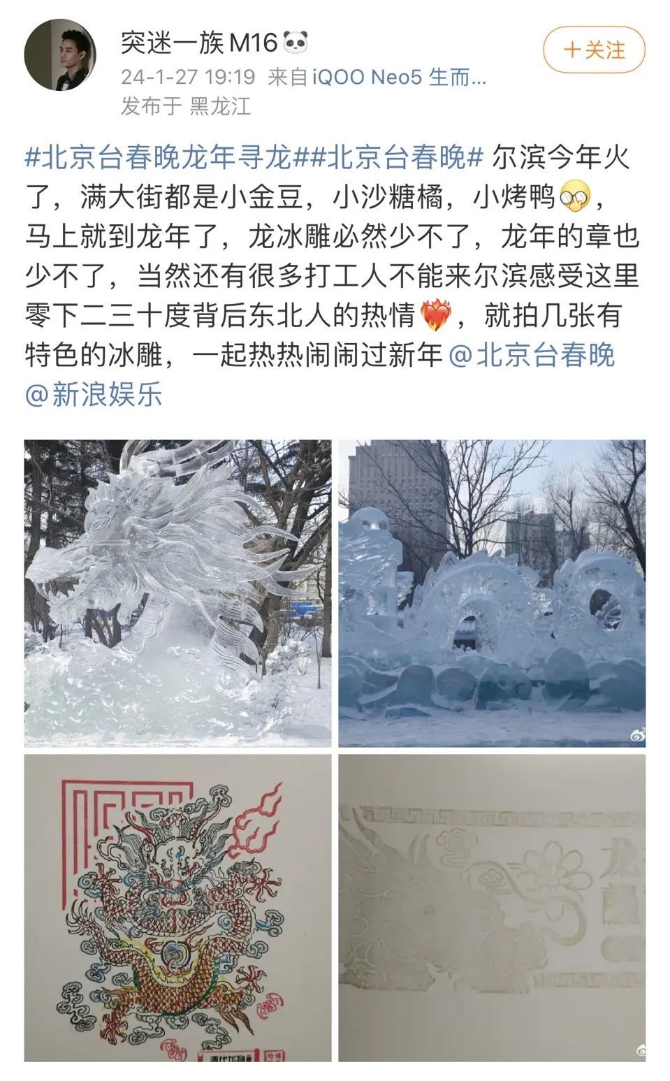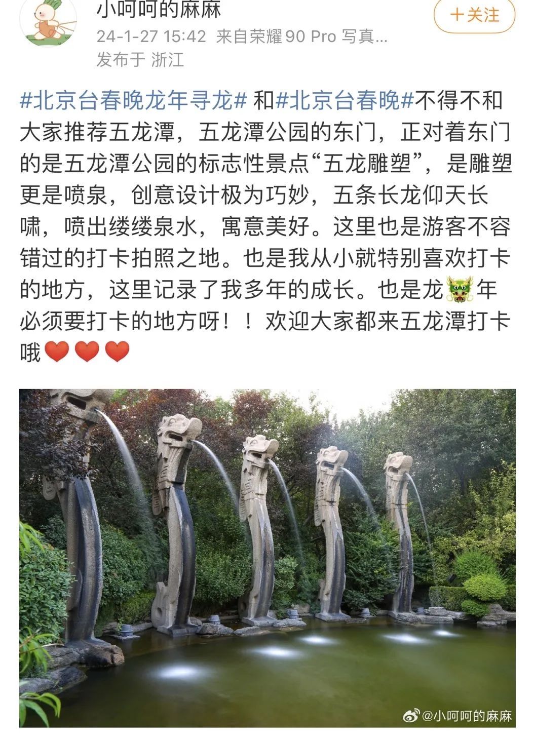青龙献瑞春潮涌,万象生辉鸿运来。北京台春晚在微博发起龙年寻龙话题征集活动,带领广大网民走上citywalk寻龙之旅,在街头巷尾不断邂逅花样繁多的龙,碰撞出精彩有趣的寻龙故事。