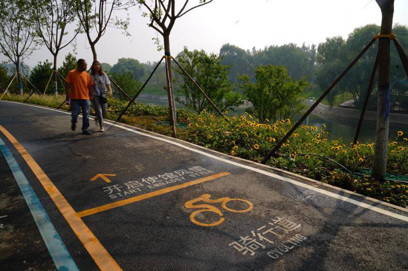 正在建设中的第四使馆区,今后将增添一条水绿相融、生机盎然的大尺度滨水开放空间。朝阳区坝河滨水空间建设一期工程(使馆区东区段)近日正式开放。