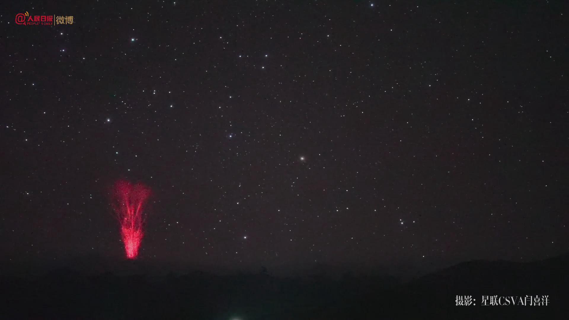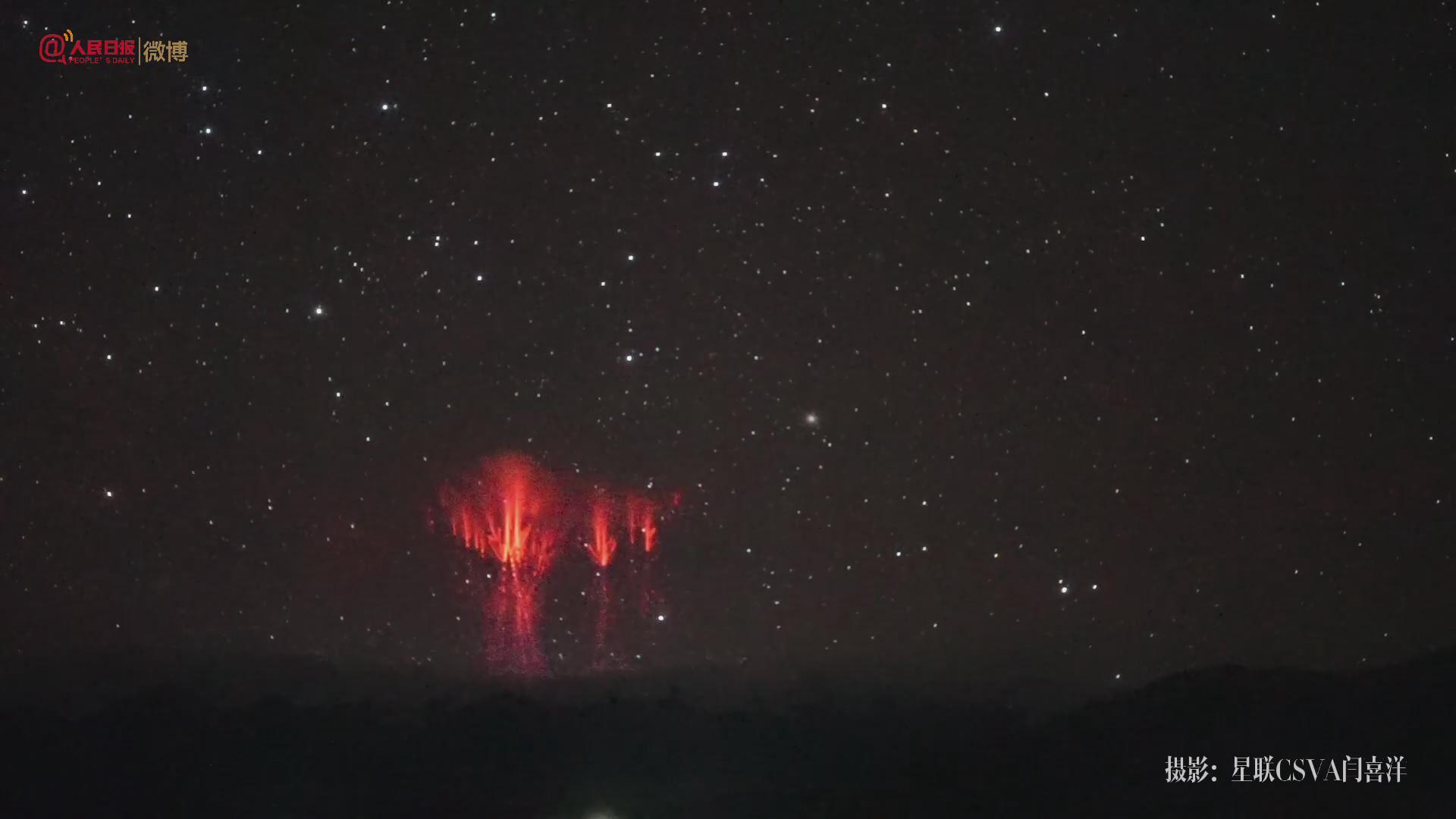19日凌晨,西藏苏日玛附近,中国摄影师捕捉到了罕见的红色精灵闪电。精灵闪电形成于大气中间层,是雷击产生电磁波的结果,也被称作“射向太空的闪电”。