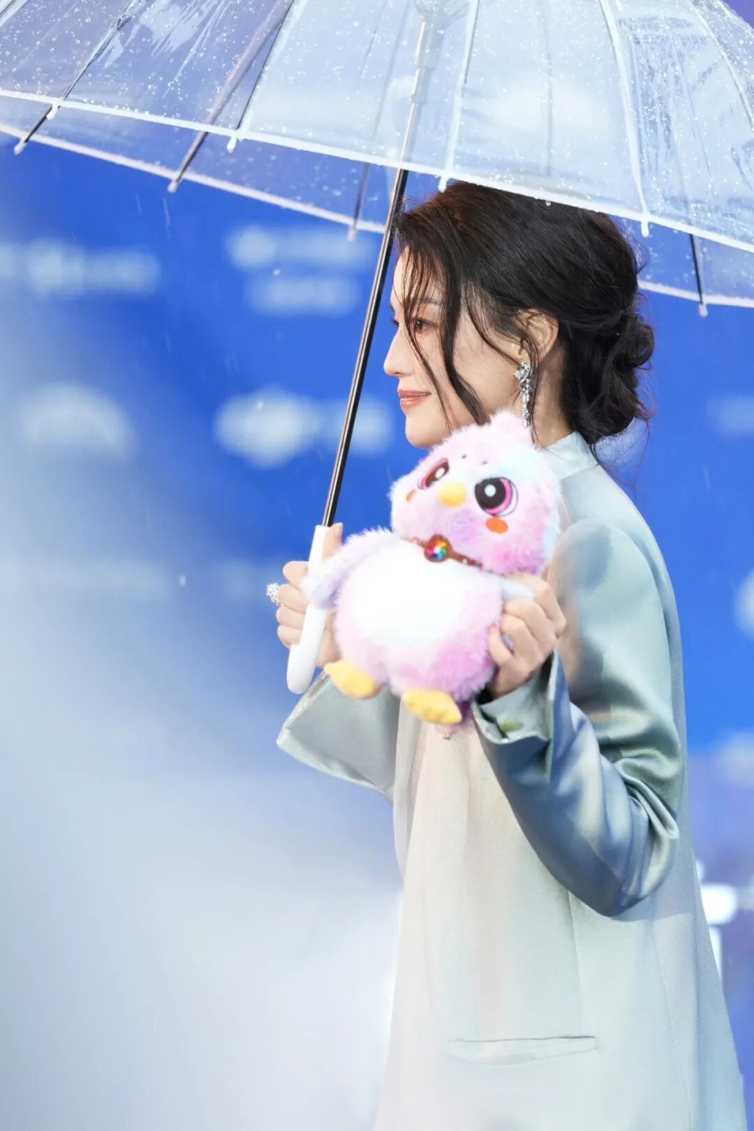 “运河蓝”中撑透明伞的舒淇,似凌波而来;开幕式台上台下,举手投足更是带出了“东方气韵 + 电影感”。