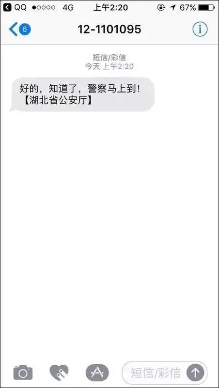 下面这位网友虽然知道短信报警,却没有做好与警察蜀黍的沟通,所幸并无大碍。