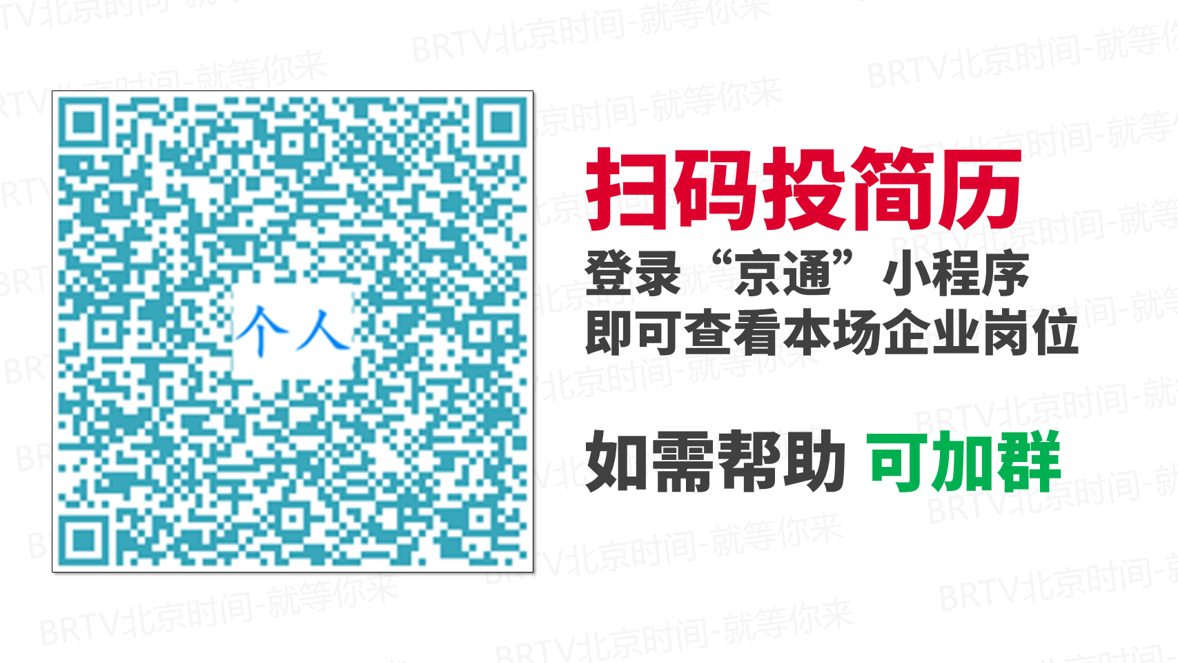 北京时间是北京广播电视台官方App,管理员只会在群内分享官方组织的招聘活动信息。如果有人私加您微信、或分享“兼职副业” “领红包”等消息,请勿相信,以防被骗。